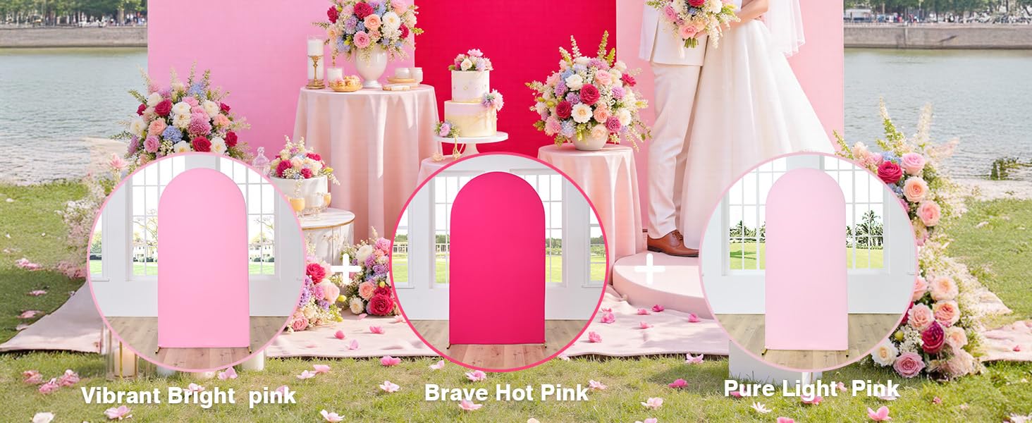 مجموعة أغطية خلفية قوسية وردية مكونة من 3 قطع (غير متضمنة في حامل القوس) - تشتمل أغطية خلفية القوس على ثلاثة أغطية قوس من الألياف اللدنة القابلة للتمدد بأحجام 7.2أقدام و6.6أقدام و6أقدام، مثالية لإنشاء عرض متعدد الطبقات أو متعدد الأقواس. مثالية لخلفيات قوس الزفاف، وخلفيات استحمام الطفل، وديكورات قوس عيد الميلاد.