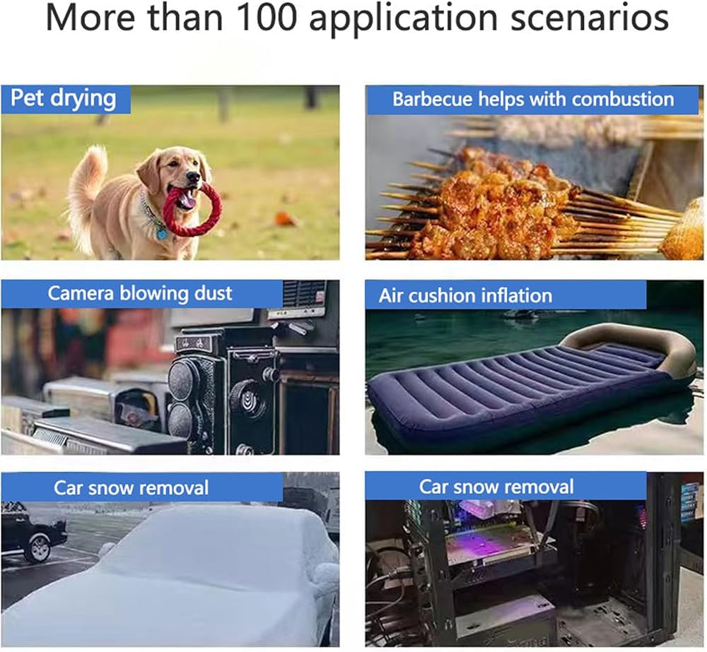 استخدام متعدد الأغراض: من تجفيف الحيوانات الأليفة إلى تنظيف الأجهزة الإلكترونية، يتفوق منفاخ الهواء اللاسلكي هذا في سيناريوهات متنوعة مثل إشعال الشواء وإزالة الثلج. تعمل الفوهة المغناطيسية على تعزيز المرونة لتدفق الهواء المستهدف.