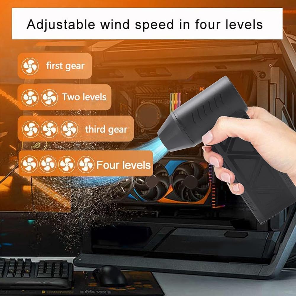 أداء قوي: توفر منفضة الهواء الكهربائية هذه تدفق هواء مثير للإعجاب يبلغ 130000 دورة في الدقيقة، مما يجعلها مثالية للتجفيف السريع والتنظيف الفعال. يتكيف مع المهام المختلفة دون عناء.