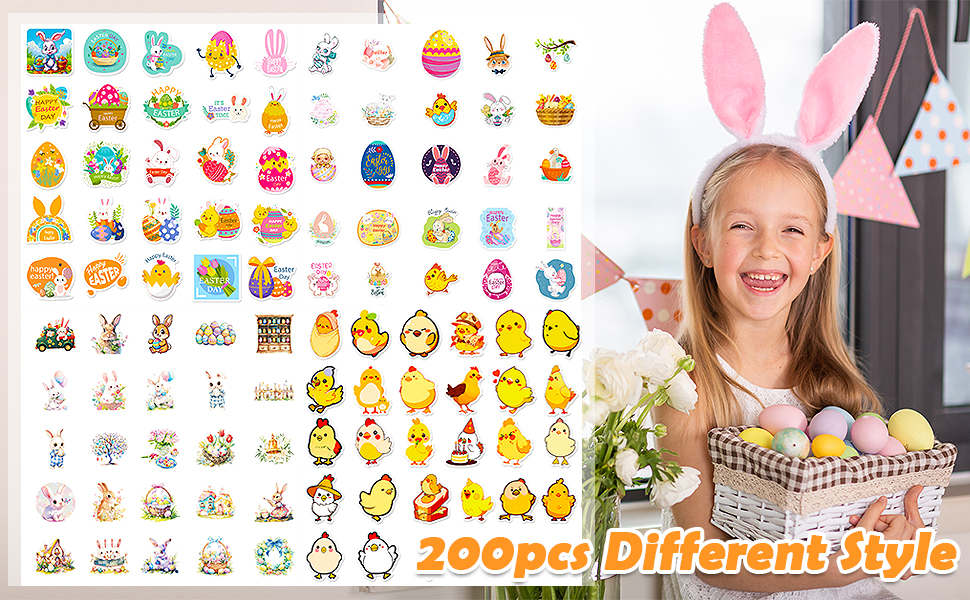 حزمة الملصقات القيمة - تحتوي هذه الحزمة على 200 ملصق كرتوني لطيف فريد من نوعه لعيد الفصح يضم الأرانب والبيض والكتاكيت وزهور الربيع وغيرها من عناصر عيد الفصح، دون أي نسخ مكررة. يبلغ مقاس كل ملصق من 1.96 إلى 2.36 سم، مثالي للأطفال ومفضلات الحفلات والكبار!