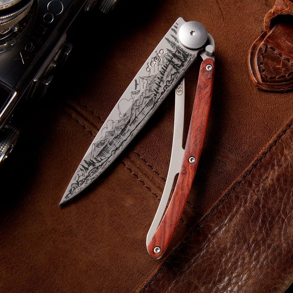 شفرة تحمل قصتك: يروي كل Deejo قصة من خلال تصميمه - تصميمك. يكرم تصميم الجبل القمم الوعرة التي تشكل جمال أمريكا البري، من جبال روكي إلى جبال أبالاتشي. إنه يتحدث إلى أولئك الذين يجدون الحرية على الطريق، والهدوء فوق خط الشجرة، والهدف في كل رحلة. مع شفرة من الفولاذ المقاوم للصدأ مقاس 3.7 بوصة ومقبض من الخشب المرجاني، يجمع Deejo 37G بين الفن والخفة والغرض في سكين ستحمله كل يوم.
