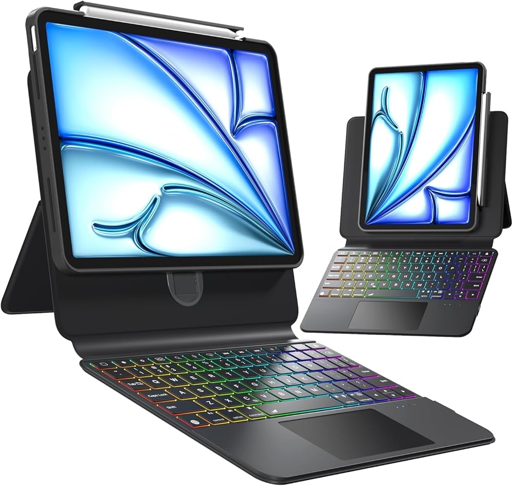 【360° rotation + magnetic detachable design】This keyboard cover supports 360° rotation, allowing for free switching between landscape and portrait modes. It can be magnetically detached and quickly switched between the protective cover or the standalone keyboard mode, meeting the needs of various scenarios such as office work, entertainment, and drawing, with flexibility and efficiency.