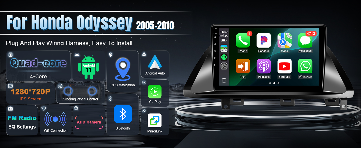 【ميرورلينك لاسلكي وبلوتوث وراديو إف إم】شاشة Naifay carplay لسيارة Honda Odyssey 2008 تدعم MirrorLink اللاسلكي لنظامي iOS وAndroid، متصلة عبر البلوتوث. يدعم هذا الاستريو لشاشة Honda Odyssey لعام 2009 الاتصال بدون استخدام اليدين، وتنزيل سجلات الاتصال في دليل الهاتف، وموسيقى البث الصوتي، مع استريو عالي الجودة، والذي يمكنه البحث في القنوات بطرق أوتوماتيكية كاملة، وطريقة شبه آلية وطريقة ضبط دقيقة؛ راديو FM مستقر مع عدد غير محدود من المحطات المعدة مسبقًا، وصوت رائع.