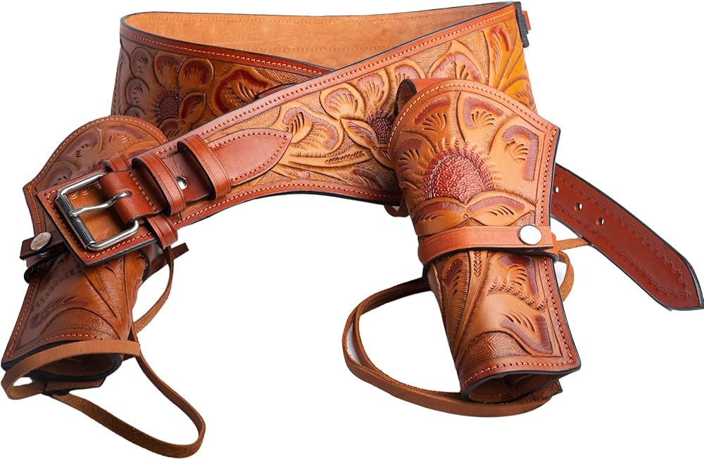 • PERFECTLY FITS: Cowboy Gun holster belt has a matching dual-handed, right handed and left handed leather revolver holster sized for a holster western, .22 caliber gun holster costume cowboy revolver fits most barrel lengths 4 to 8 inches.