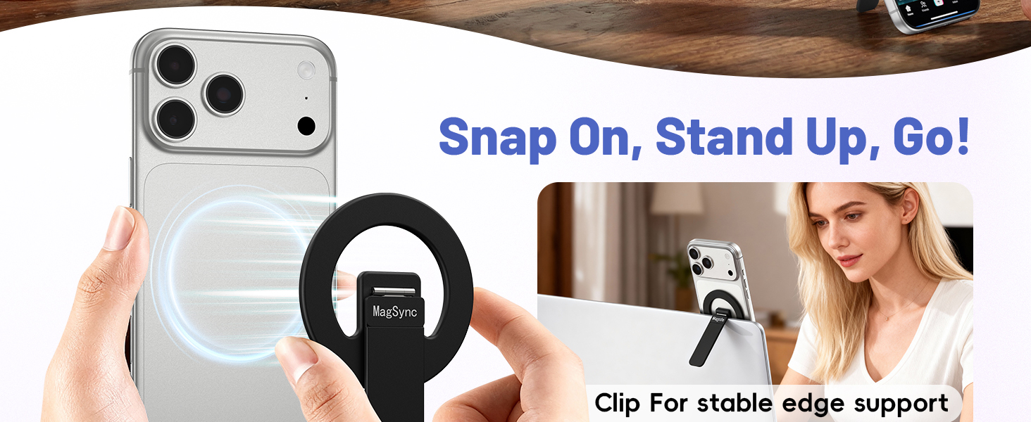 • سهل الشحن اللاسلكي: عندما يحين وقت الشحن، ما عليك سوى تحريك الحامل من الجزء الخلفي لهاتفك ووضعه على الشاحن اللاسلكي الخاص بك. لا توجد خطوات أو تعديلات معقدة - يظل الشحن سريعًا ومتسقًا وخاليًا تمامًا من الانقطاع.