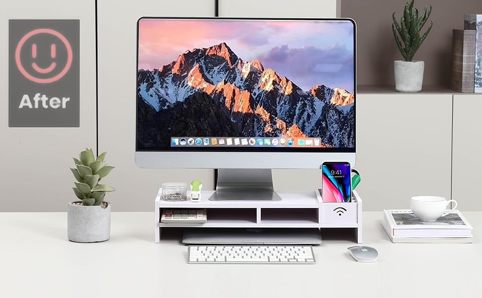 تصميم قوي وآمن: رافعة الشاشة مصنوعة من MDF، بدون اعوجاج أو تشقق، هيكل متين يدعم 40 رطلاً من الضغط التنازلي. يتميز بأنه مقاوم للماء وسهل التنظيف. تصميم آمن لحماية جسمك، طلاء صديق للبيئة، زوايا مستديرة بدون حواف أو براغي حادة.