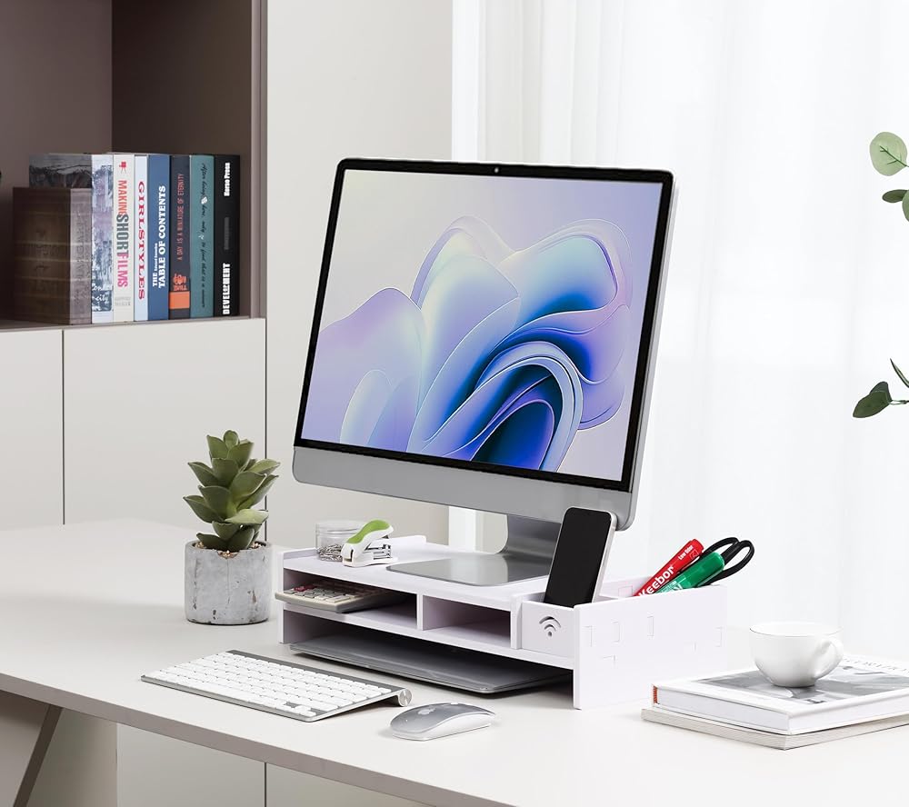 حامل شاشة فعال: ارفع الشاشة إلى مستوى مريح للعين، يساعدك على التخلص من إجهاد الرقبة والعين.