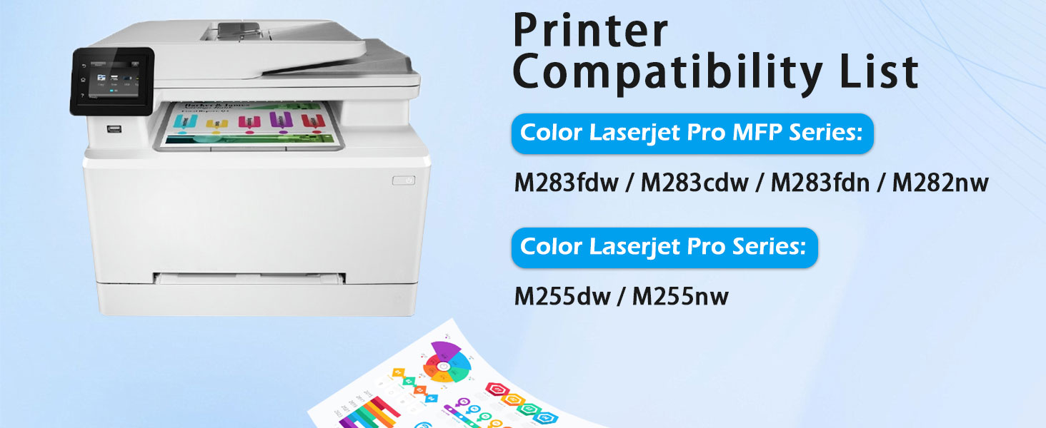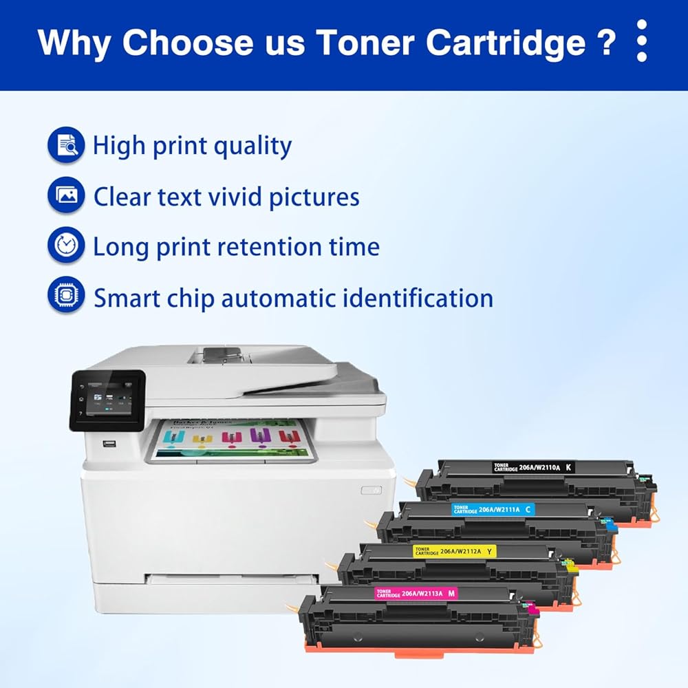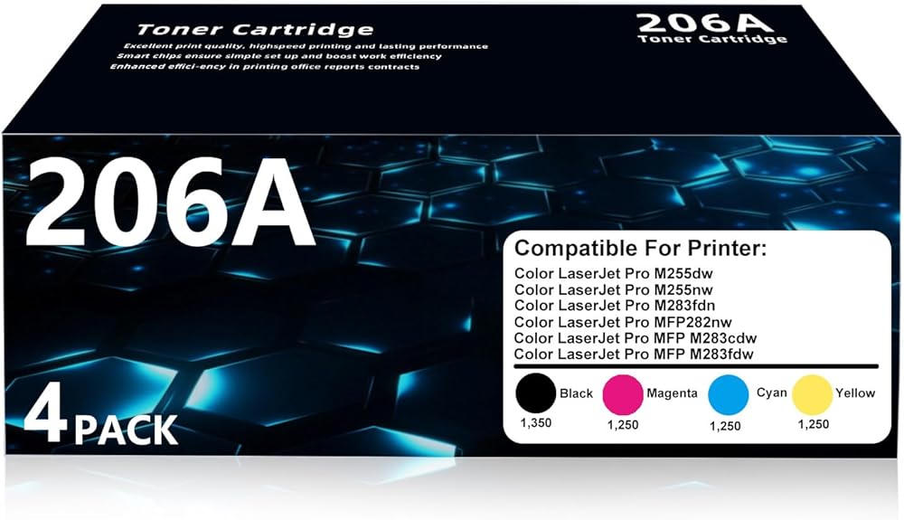 مجموعة خراطيش حبر 206A مكونة من 4 طابعات متوافقة: متوافقة مع حبر طابعات Color Laserjet Pro MFP M283fdw M283cdw M283fdn M282nw M255nw M255dw
