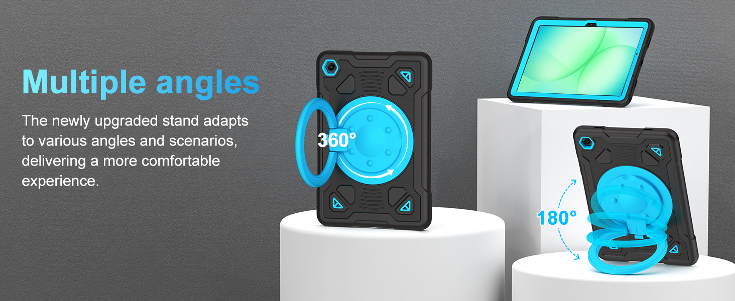 【حامل دوار 360 درجة وطيات 180 درجة】جراب Galaxy A11Plus/A9 Plus مزود بمقبض دوار 360 درجة يمكن طيه أيضًا 180 درجة ليمنحك زوايا متعددة بين 25-85 درجة من الاتجاه الأفقي أو الرأسي، كما يوفر إمكانية الإمساك باليد والتعليق على الحائط باستخدام وظيفة المقبض، مما يسمح لك بالاستخدام أو الحمل بشكل أسهل، وهو مثالي لمجموعة متنوعة من الأشخاص والمناسبات.