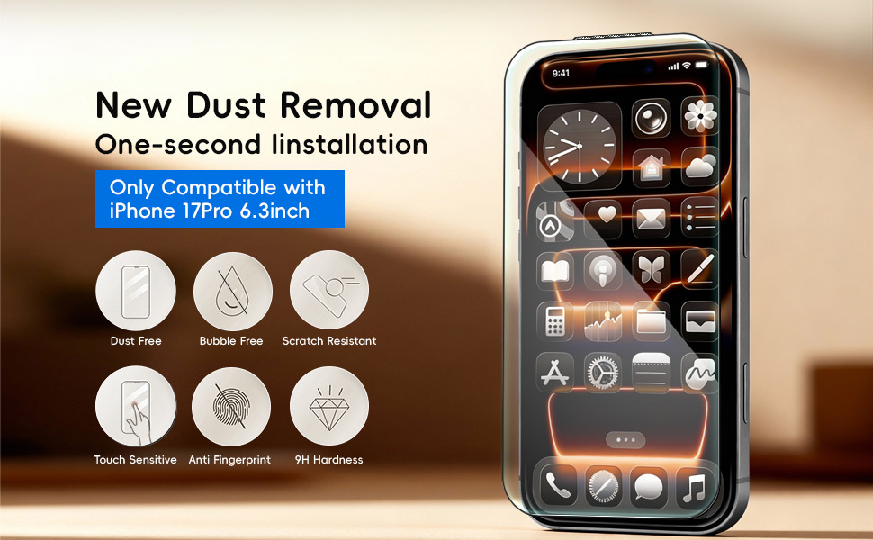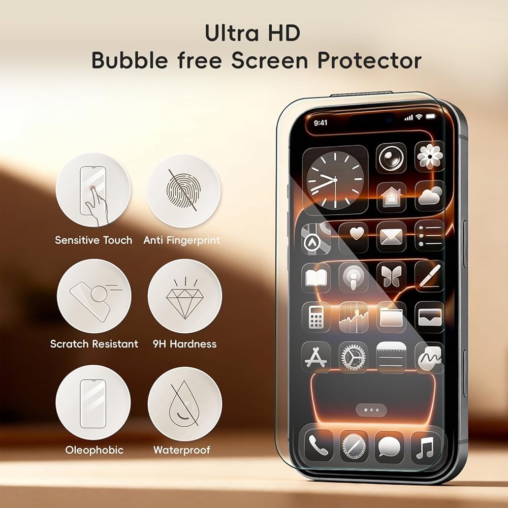 حماية عالية الجودة: مصنوع من زجاج مقسى فائق القوة بصلابة 9H، يحمي واقي الشاشة هذا لجهاز iPhone 17 Pro بشكل فعال ضد السقوط العرضي والتأثيرات والخدوش والكشوط اليومية، مما يوفر الحماية القصوى لجهازك.