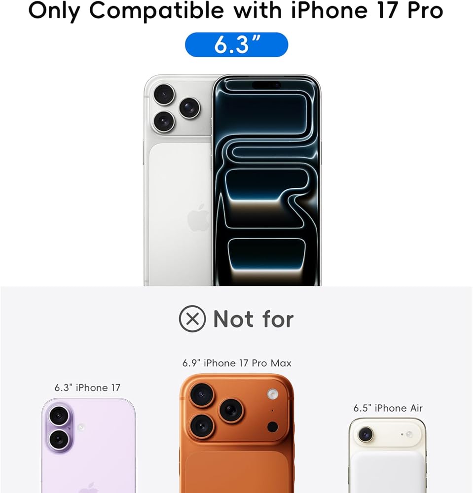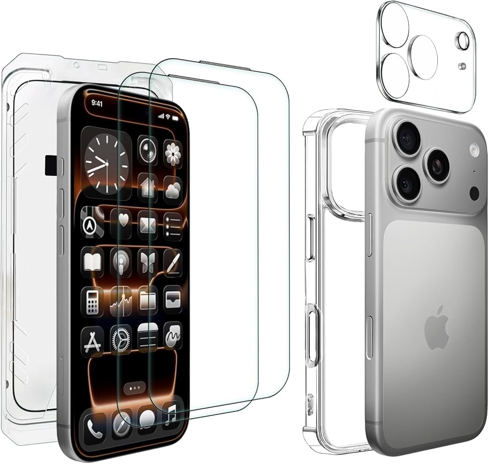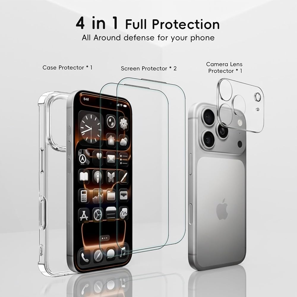 توافق مثالي ومجموعة كاملة: مصمم حصريًا لهاتف iPhone 17 Pro. تشتمل هذه العبوة على واقي شاشة 2x لجهاز iPhone 17 Pro، و1x واقي عدسة الكاميرا، و1x حافظة واقية وإطار تثبيت سهل الاستخدام من أجل محاذاة مثالية في كل مرة.
