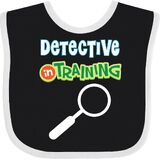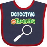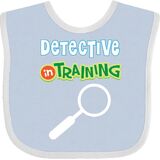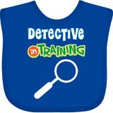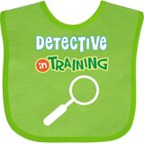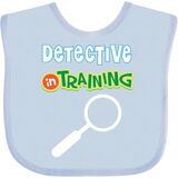 Detective In Training Baby Bib with magnifying glass design for a boy or girl hoping to be a future detective.