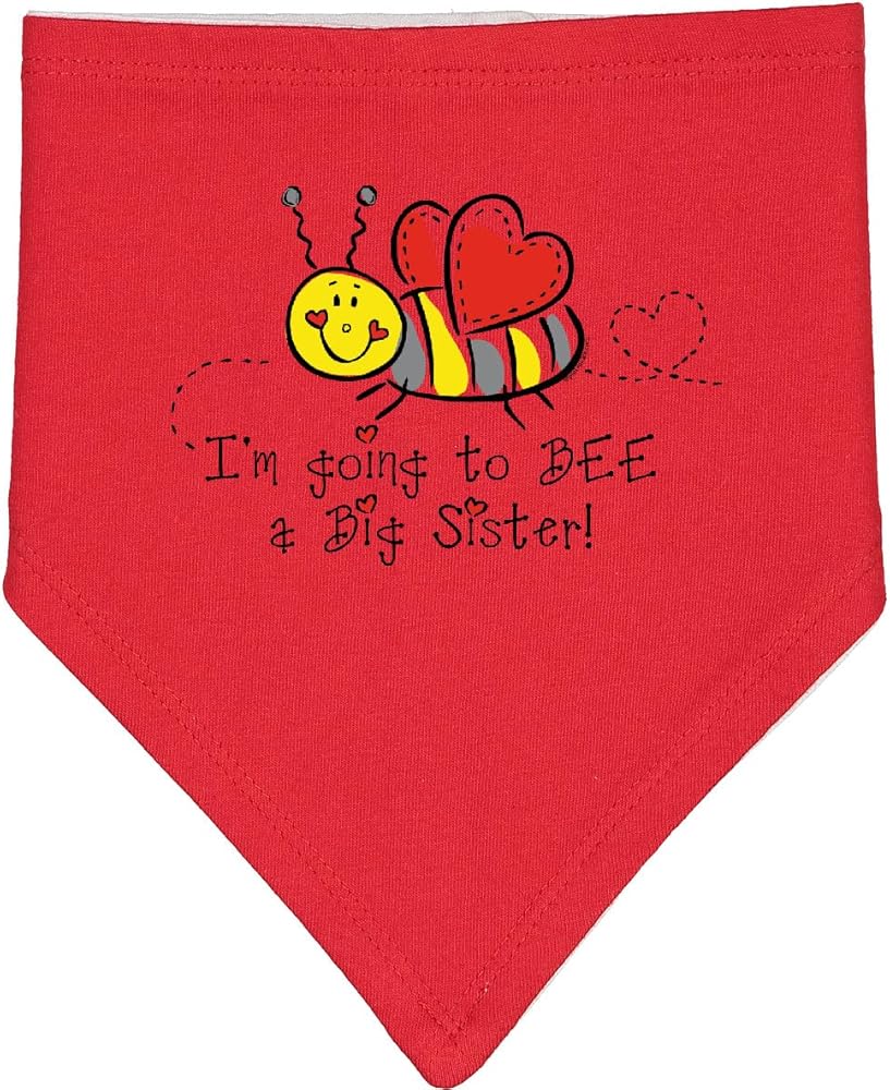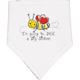 • Future big sister Baby Bandana Bib with an adorable bumble bee with red heart wings says I'M GOING TO BEE A BIG SISTER! Little red hearts over the "i"s.