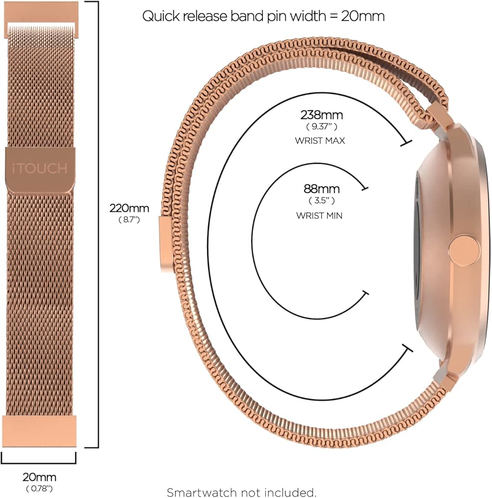 سوار ساعة iTOUCH 20 مم سريع الفك - متوافق مع iTOUCH AIR 3 (40 مم) وSPORT 3، SPORT 4 - ليس لـ AIR 3 (44 مم)، AIR 4 - يناسب الساعات بعرض 20 مم