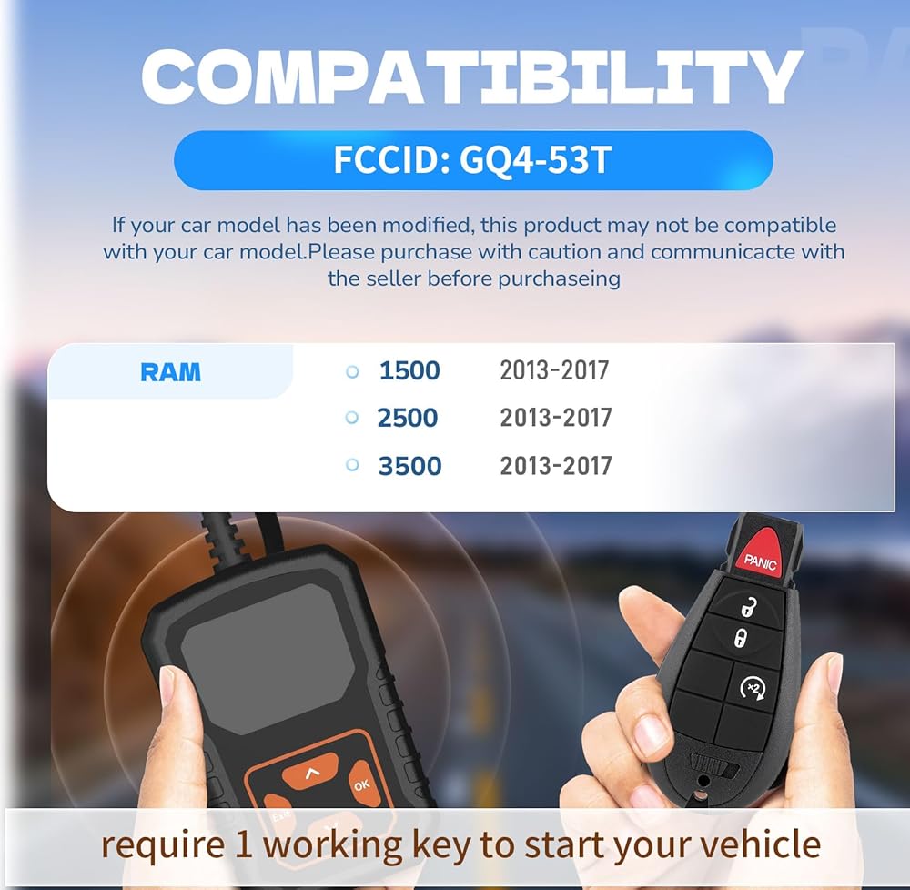 • معرف لجنة الاتصالات الفيدرالية: GQ4-53T، هذا المفتاح البديل متوافق مع Dodge RAM 1500 2500 3500 2013 2014 2015 2016 2017.