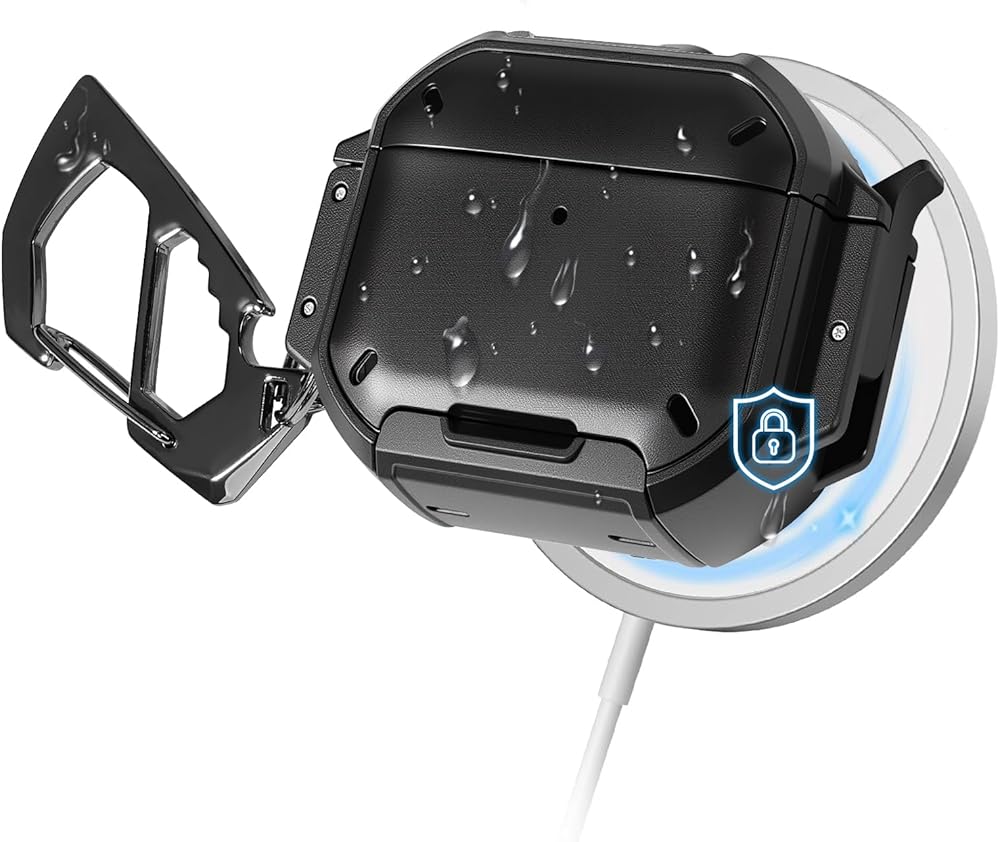 MOLOPPO Protect your earbuds with confidence and style. The MOLOPPO Case for AirPods Pro 3 delivers military-grade protection, IP68 waterproof performance, and wireless-charging compatibility—all in one sleek, rugged shell. Its locking mechanism and carabiner clip for AirPods Pro 3 offer extra security and portability, making it ideal for travel, sports, or everyday use. Whether you're hiking in the rain or commuting to work, this shockproof, anti-scratch case for AirPods Pro 3 keeps your earbuds safe and looking brand new.