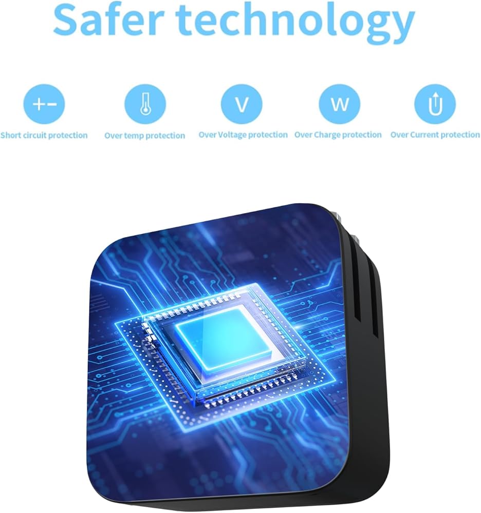 السلامة: تم اختبار جميع أجهزة الشحن لدينا من قبل مهندسين فنيين محترفين في مركز التصنيع، ومن أجل ضمان السلامة، تحتوي أجهزة الشحن على نظام مدمج لتبديد الحرارة لحماية الشاحن من الحرارة الزائدة عند إخراج الطاقة بالكامل. توفر تقنية رقاقة IC المدمجة حماية من الحمل الزائد/الدائرة القصيرة/الحرارة الزائدة.