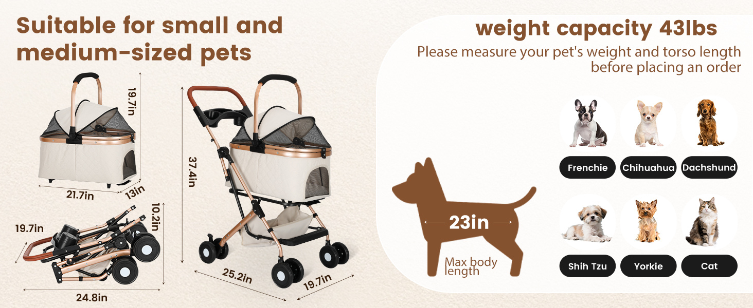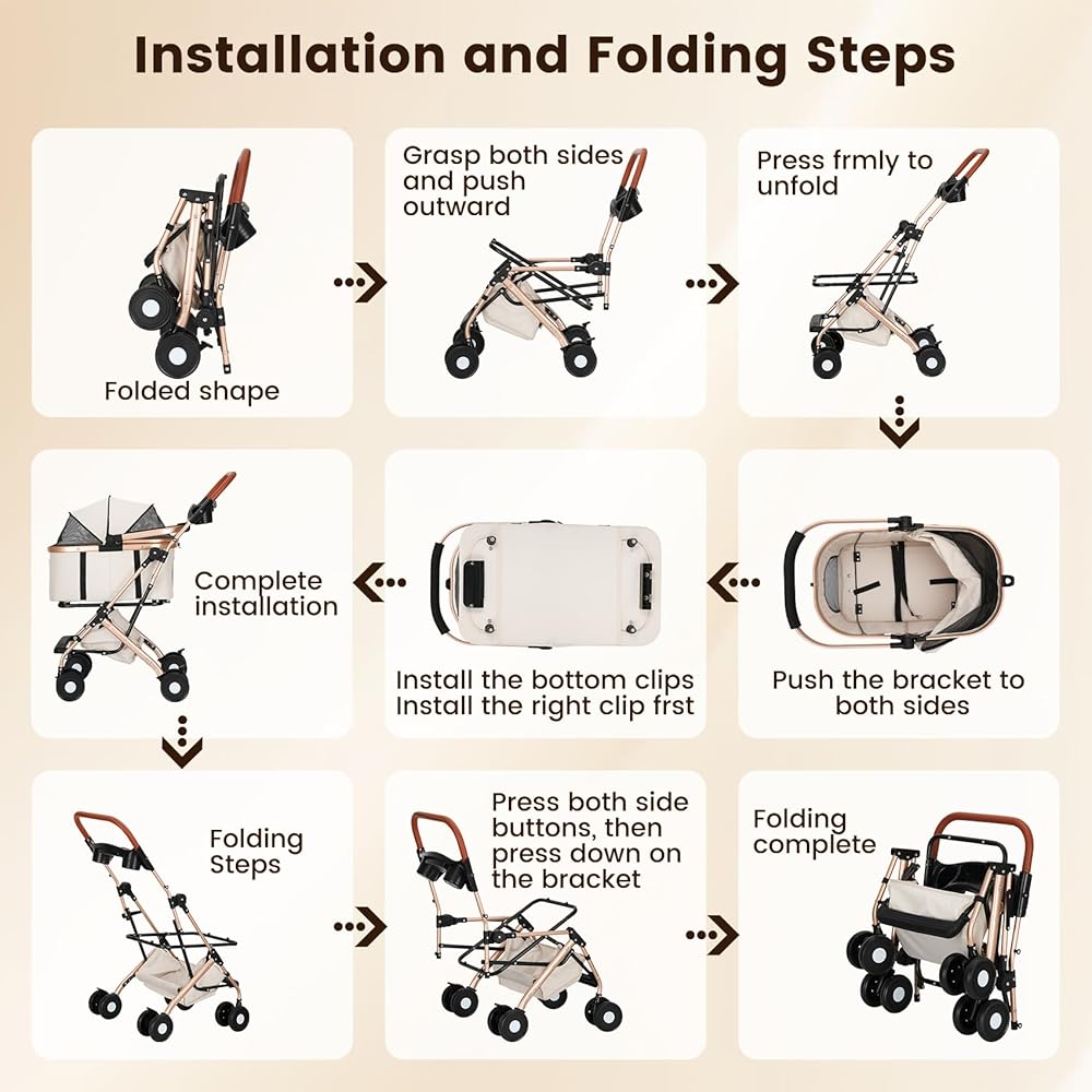 【راحة مزدوجة للحيوانات الأليفة والمالك】تتضمن عربة الكلاب الصغيرة هذه العديد من الميزات المدروسة: مقبض من الجلد الناعم يقلل بشكل كبير من إجهاد المعصم أثناء الدفع؛ سلة تخزين سفلية كبيرة جدًا، وحامل أكواب علوي، وجيب خلفي يحافظ على أغراضك الأساسية ومكافآت حيوانك الأليف وألعابه في متناول اليد. تدعم عربة الحيوانات الأليفة أيضًا الوضع المزدوج "عربة الأطفال + الناقل"، حيث تتحول على الفور إلى سرير مستقل للحيوانات الأليفة للاستخدام في السيارة أو في المنزل، مما يجعل كل نزهة سهلة وممتعة.