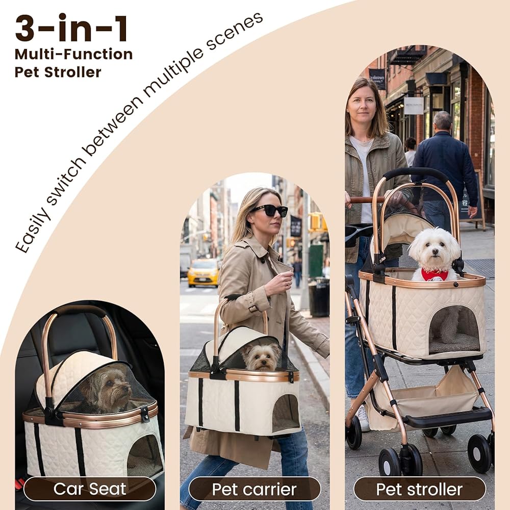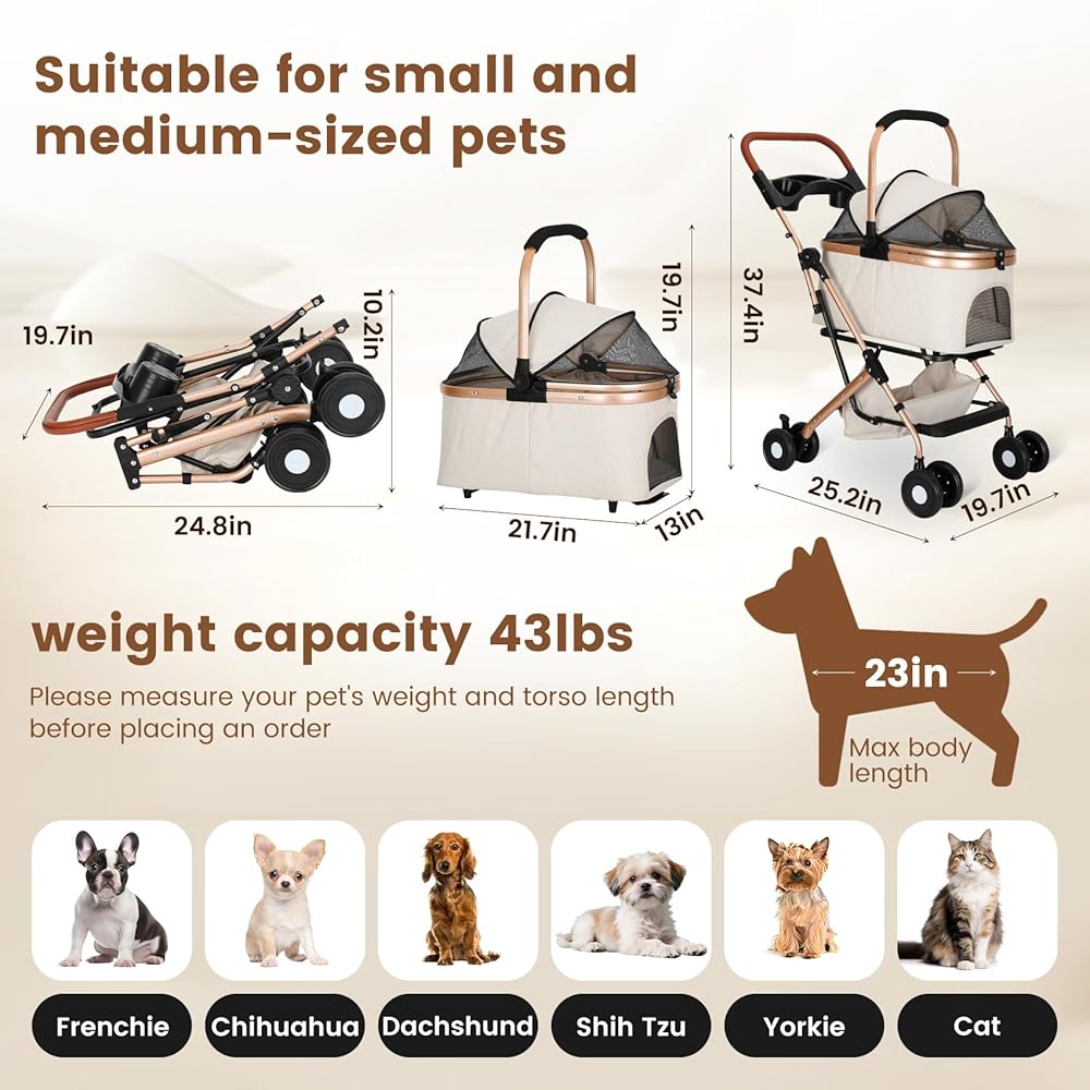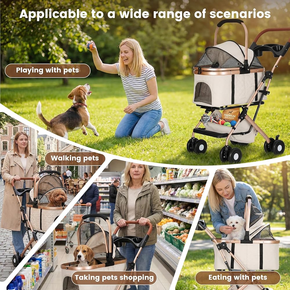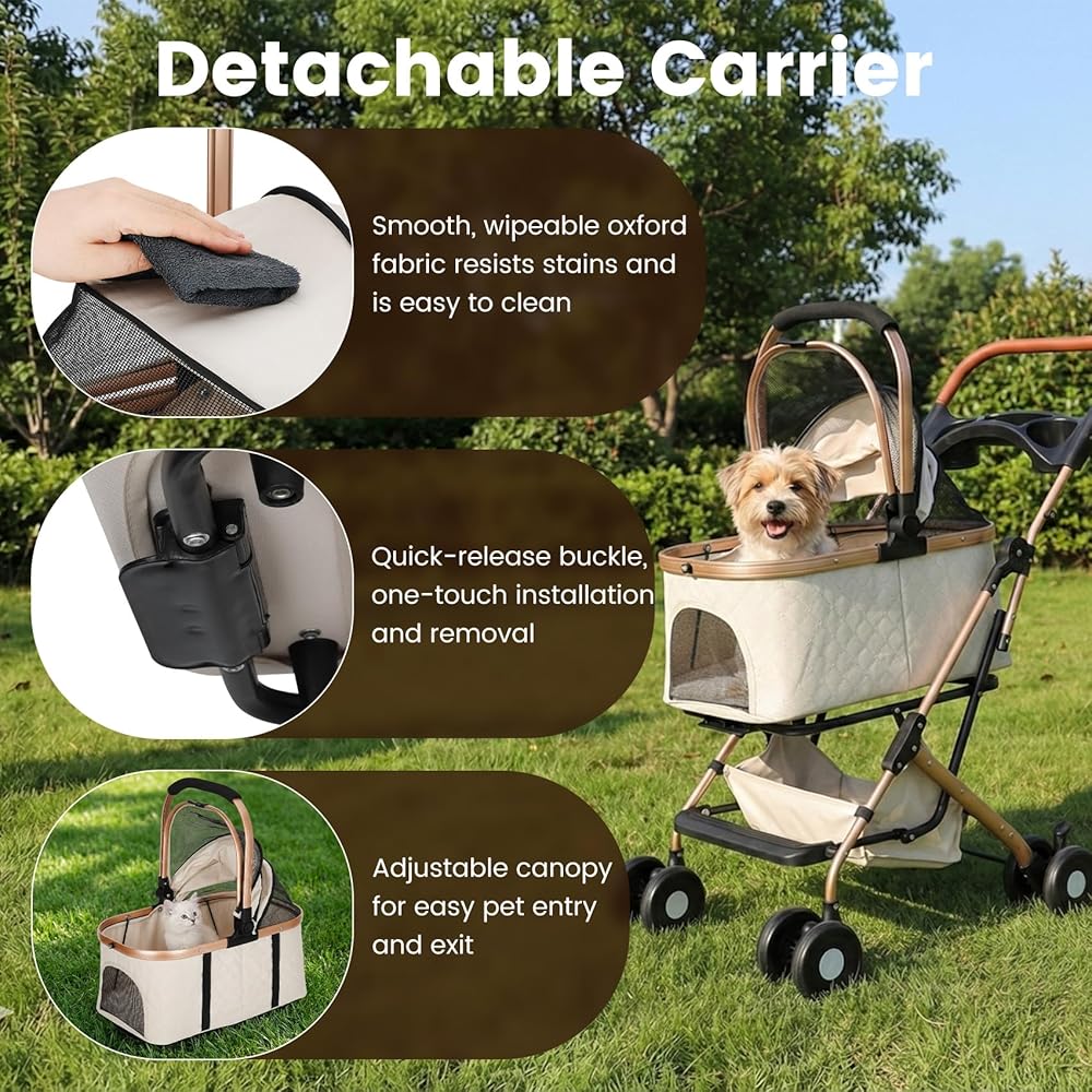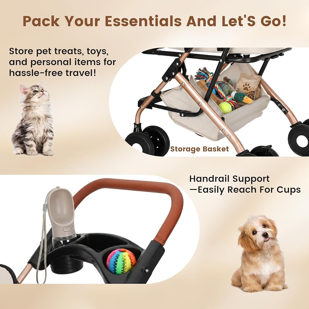 عربة كلب للكلاب والقطط الصغيرة والمتوسطة، عربة أطفال قابلة للطي تحمل ما يصل إلى 44 رطلاً، عربة كلب مع سلة تخزين وحاملات أكواب، بالإضافة إلى حامل حيوانات أليفة محمول قابل للإزالة