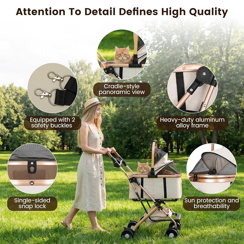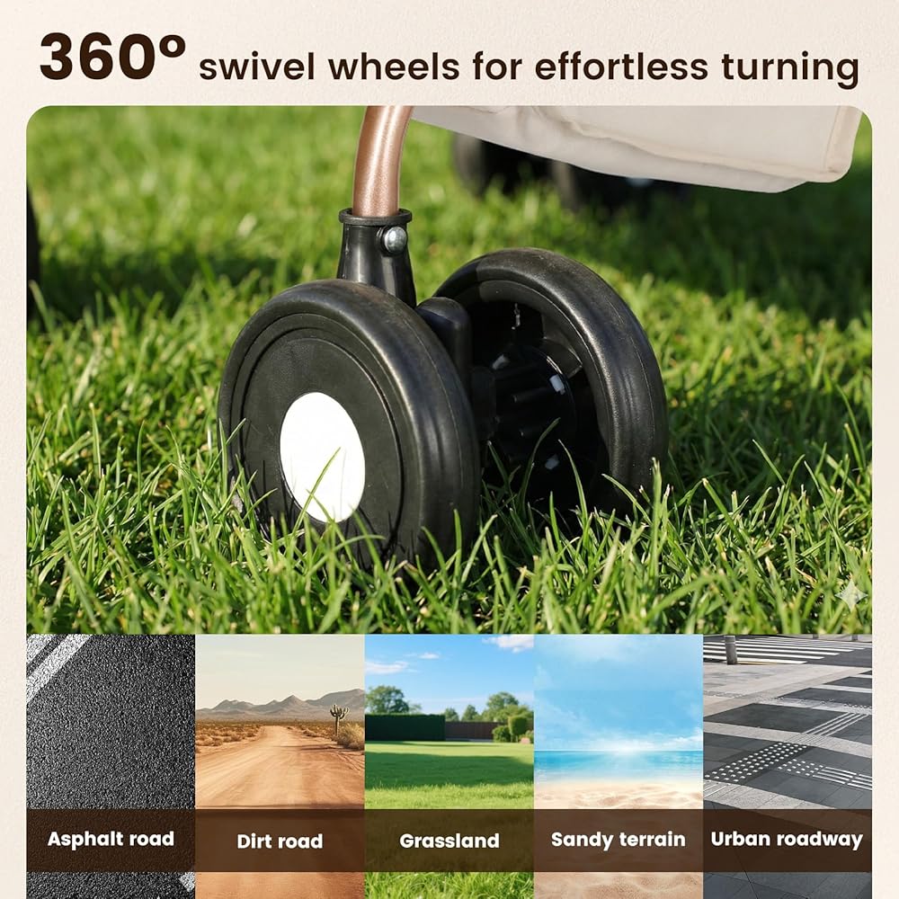 【توجيه رشيق، فرامل موثوقة】مجهزة بعجلات أمامية دوارة بزاوية 360 درجة، توفر عربة القطط هذه قدرة استثنائية على المناورة. يمكنك التنقل في ممرات مراكز التسوق المزدحمة، أو مسارات المتنزهات المتعرجة، أو الزوايا الضيقة بالقرب من منزلك من خلال تحكم سهل وانعطافات سلسة. بالإضافة إلى العجلات الخلفية القوية ونظام الكبح الموثوق به، فإنه يضمن الثبات أثناء السفر المستقيم وأثناء الثبات. تصبح كل نزهة أو رحلة تسوق أو زيارة للأصدقاء رحلة سلسة وخالية من القلق وممتعة