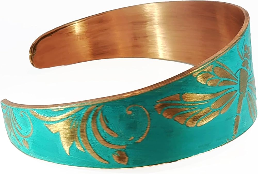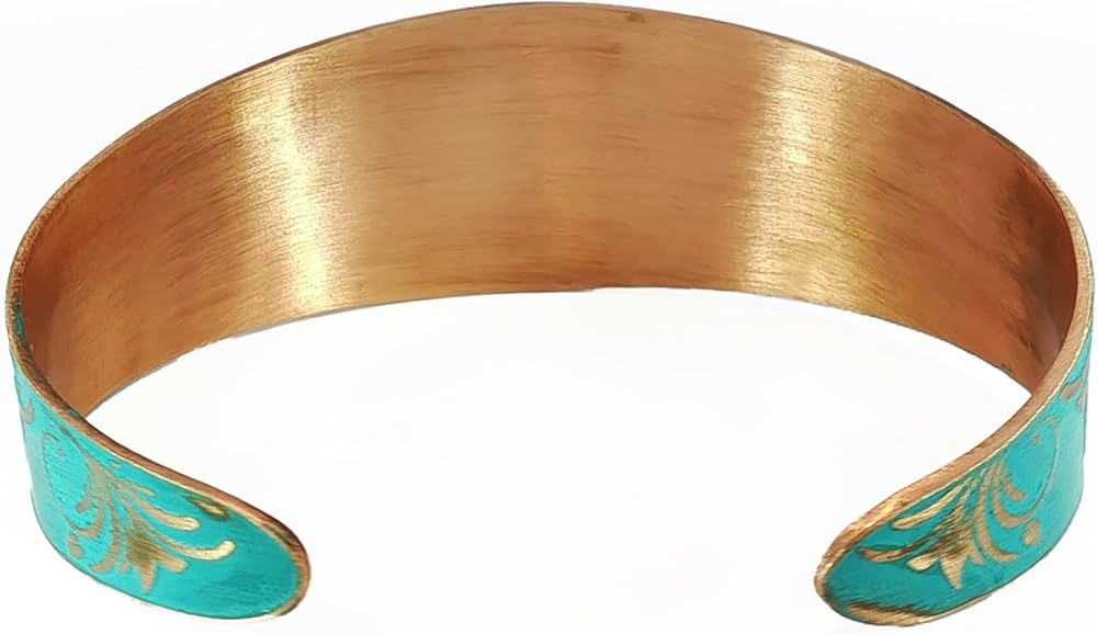 Stunning detail on these beautiful rustic patina copper cuffs. Treated with a rustic teal verdigris patina for that beautiful weathered look. 100% copper, nickel & lead-free. Sealed with triple baked on lacquer which will protect the cuff from oxidation, providing long-lasting wear & durability. To care for your cuff, avoid immersing it in water or exposing it to harsh chemicals. With proper maintenance, it will maintain its luxurious look for a long time.