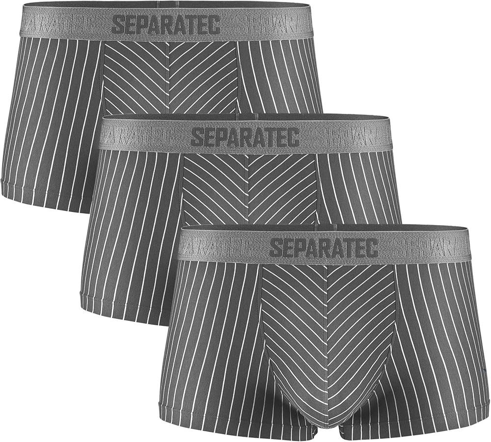 ملابس داخلية للرجال من Separatec، عبوات متعددة، سراويل داخلية قطنية بمقاس كلاسيكي، 3 قطع (صغير، رمادي)