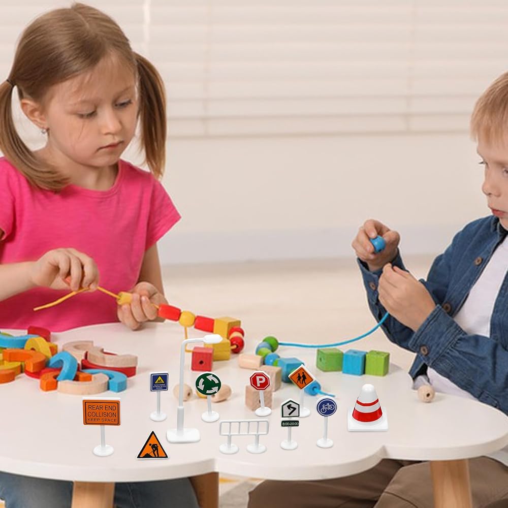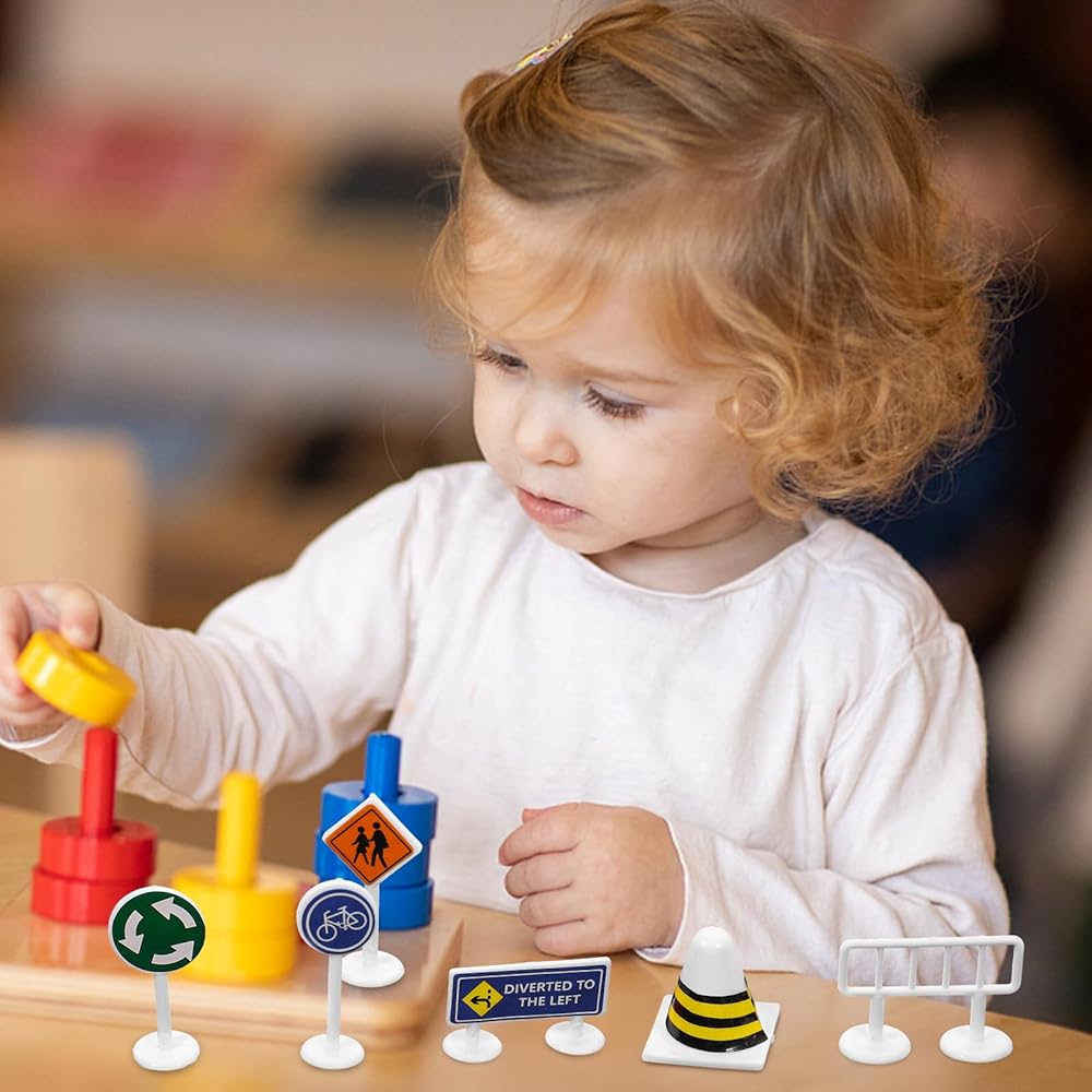 Dollhouse Traffic Signs --- This Set Includes a Variety of Common Road Signs and Traffic Signals, Allowing Children to Learn about Different Traffic Rules and Regulations