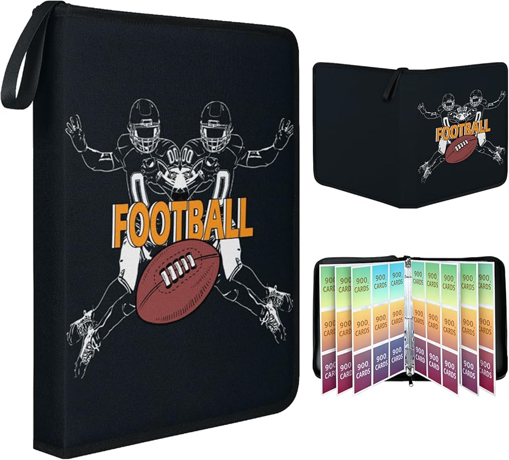 حافظة بطاقات كرة القدم، حافظة بطاقات تجارية مكونة من 900 بطاقة مع 50 حافظة قابلة للإزالة، حافظة بطاقات رياضية ذات 9 جيوب، تصميم ثلاثي الحلقات، حامل بطاقات كرة القدم لهواة الجمع