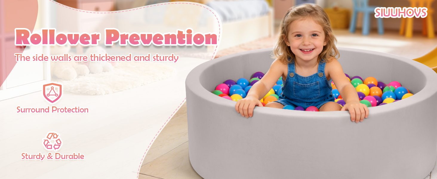 *حفرة كرات الأطفال الآمنة والمريحة* تتميز حفرة كرات الأطفال لدينا برغوة الذاكرة الممتازة مقاس 1.97 بوصة. الغطاء الخارجي مصنوع من نسيج ألياف الحليب فائق النعومة وجيد التهوية ولطيف على البشرة الحساسة. بطانة سميكة من الإسفنج الذكي تحمي من الصدمات. يخلق مساحة لعب آمنة تمنح الأمهات لحظات ثمينة لإعادة شحن طاقتها. المزيج المثالي من الأمان والراحة!