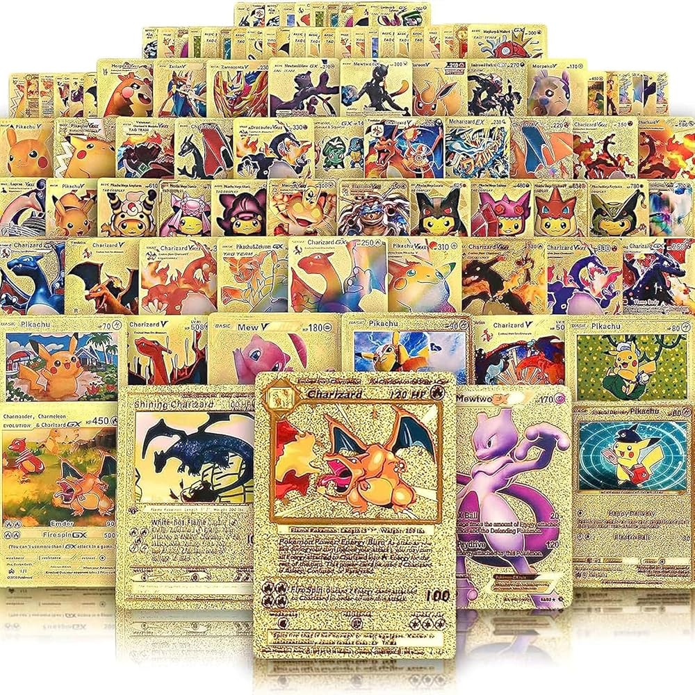 ⚡【 Perfect For Any Player】55 PCS Rare Gold Cards Packs Including Rare Gold Foil Cards(15 Vmax Cards, 14 V Series Cards, 11 GX Rare, 1 DX Cards, 2 EX Rare, 1 Mystery Cards & 11 Common Cards-No Duplicates), 55 PCS rare cards will build a new deck or get back into the game, and expand your collection.