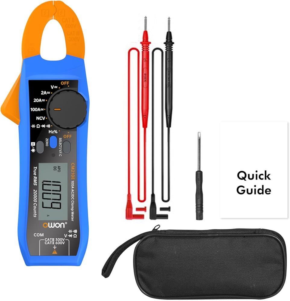 ⚡ OWON CM210E عبارة عن مقياس متعدد محمول باليد مزود بمشبك تيار متكامل. عن طريق مشبك التيار، يمكن قياس التيار المتردد والتيار المستمر حتى 200 أمبير بأمان. علاوة على ذلك، يمكن لهذا المقياس المتعدد أيضًا قياس جهد التيار المستمر/التيار المتردد والمقاومة والسعة. تعرض شاشة العرض التي يبلغ عددها 20000 ما يكفي لجميع التطبيقات الأساسية. يمكن استخدامها لقياس التيار المتردد/تيار مستمر، جهد التيار المتردد/تيار مستمر، المقاومة، السعة.