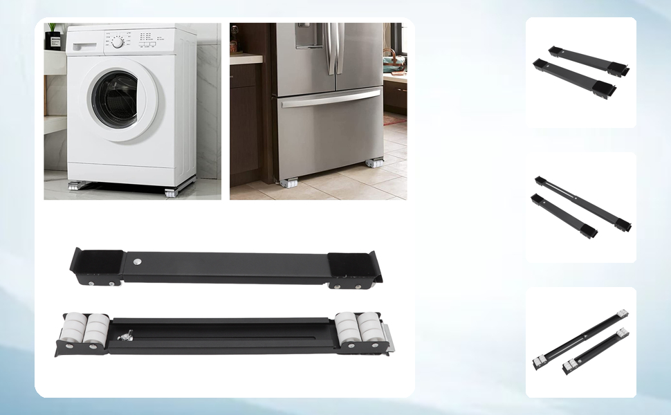 - [شديد التحمل] يمكن لأسطوانة الأجهزة القابلة للتوسيع تحمل ما يصل إلى 300 كجم، للغسالات المحمولة والثلاجات والخزائن والمزيد.