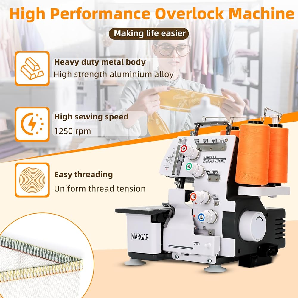 خياطة احترافية: توفر ماكينة الأوفرلوك هذه ما يصل إلى 1250 غرزة في الدقيقة وتدعم 12 نمطًا من الغرز، وتتعامل بكفاءة مع مهام الأوفرلوك والانضمام والتشطيب. يمنع نظام التغذية التفاضلية لآلة الأوفرلوك تجعد الأقمشة خفيفة الوزن والتمدد في المواد القابلة للتمدد. تستوعب شفرات القطع القابلة للتعديل والقدم الضاغطة في ماكينة الأوفرلوك سماكات القماش المختلفة، مما يجعلها مناسبة للقطن والدنيم والحياكة والمواد الأخرى