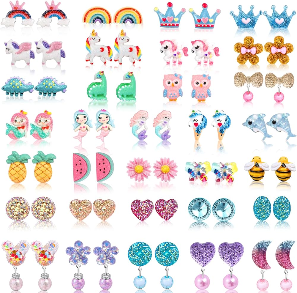 مجموعة أقراط بمشبك على الأقراط من Sunxiner مناسبة للأعمار من 4 إلى 12 عامًا للفتيات الصغيرات، 10/12/30/32، مجموعة هدايا مجوهرات بأقراط صغيرة لطيفة على الأقراط