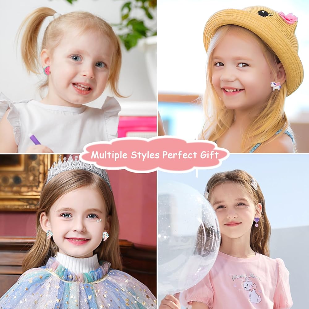 Clip On Earrings Hypoallergenic Clips Earrings Sets Suitable for Ages 4-12 Little Girls, Cute Small Clips On Earrings Jewelry Gifts Set for Girls