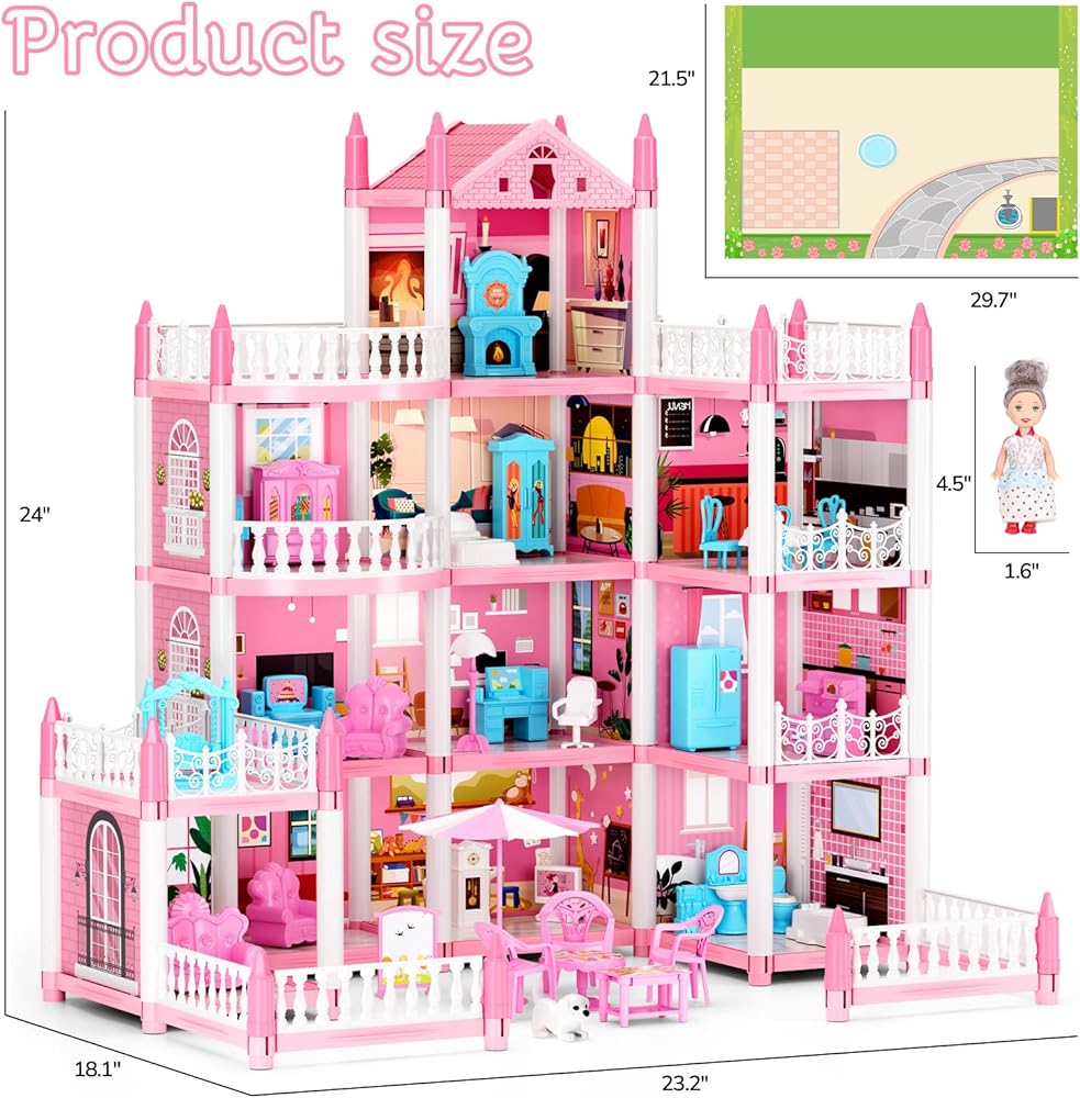 • مواد عالية الجودة: بيت الدمية مصنوع من بلاستيك أكريلونتريل بوتادين ستايرين الخالي من البيسفينول وغير السام، ومواد عالية الجودة وآمنة، قوي ومتين، غرف متعددة و4 طوابق تجعل المنزل جذابًا للغاية للأطفال.