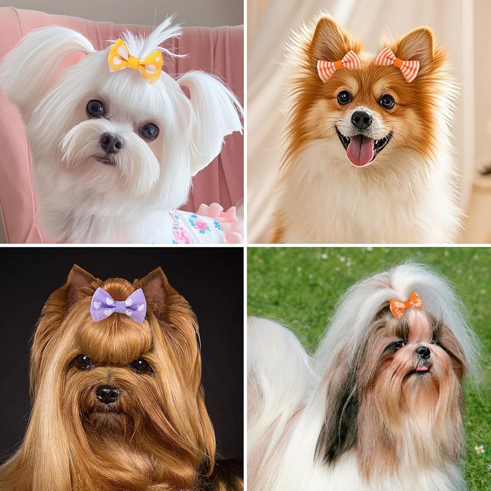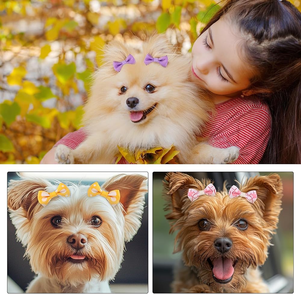 【مناسبة للحيوانات الأليفة المتعددة وسهلة الصنع】أقواس شعر الكلاب مثالية للكلاب الصغيرة والقطط والأرانب؛ رائعة للعائلات التي لديها حيوانات أليفة متعددة وسهلة التخصيص كمشابك شعر أو ربطات عنق لتصفيف مبتكر.