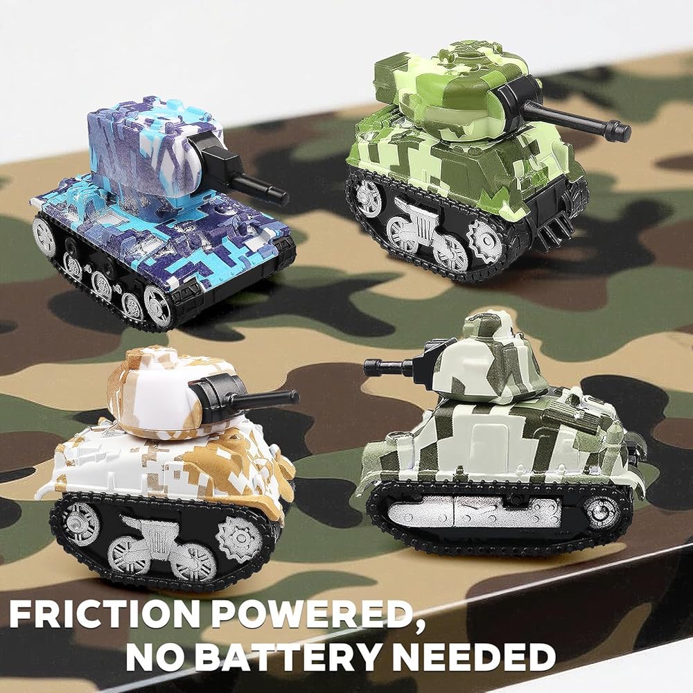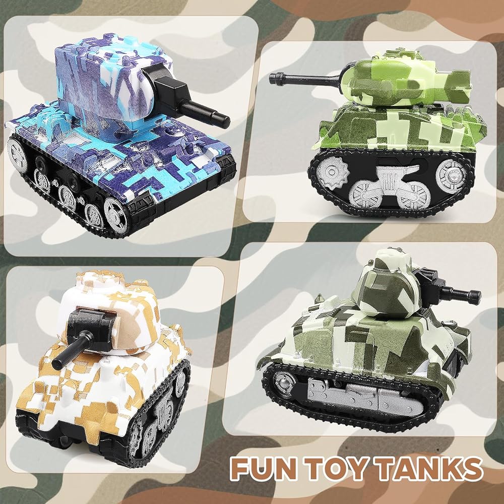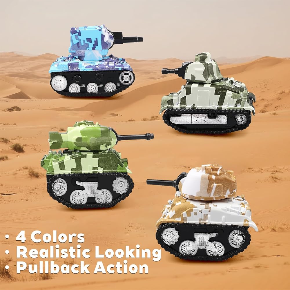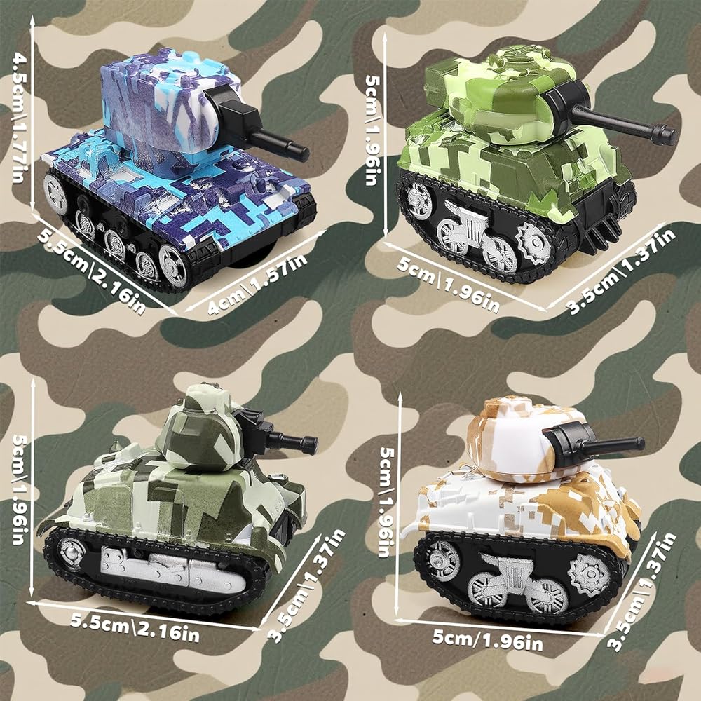 4 قطع من دبابات لعبة السحب الصغيرة، نماذج دبابات لعب المركبات للأطفال، هدايا حفلات أعياد الميلاد للأولاد والبنات للأعمار 3 4 5 6