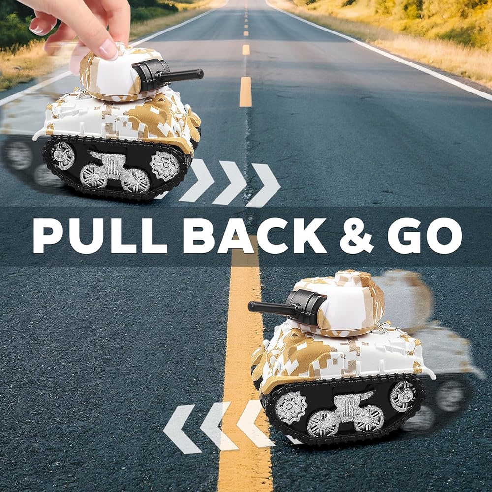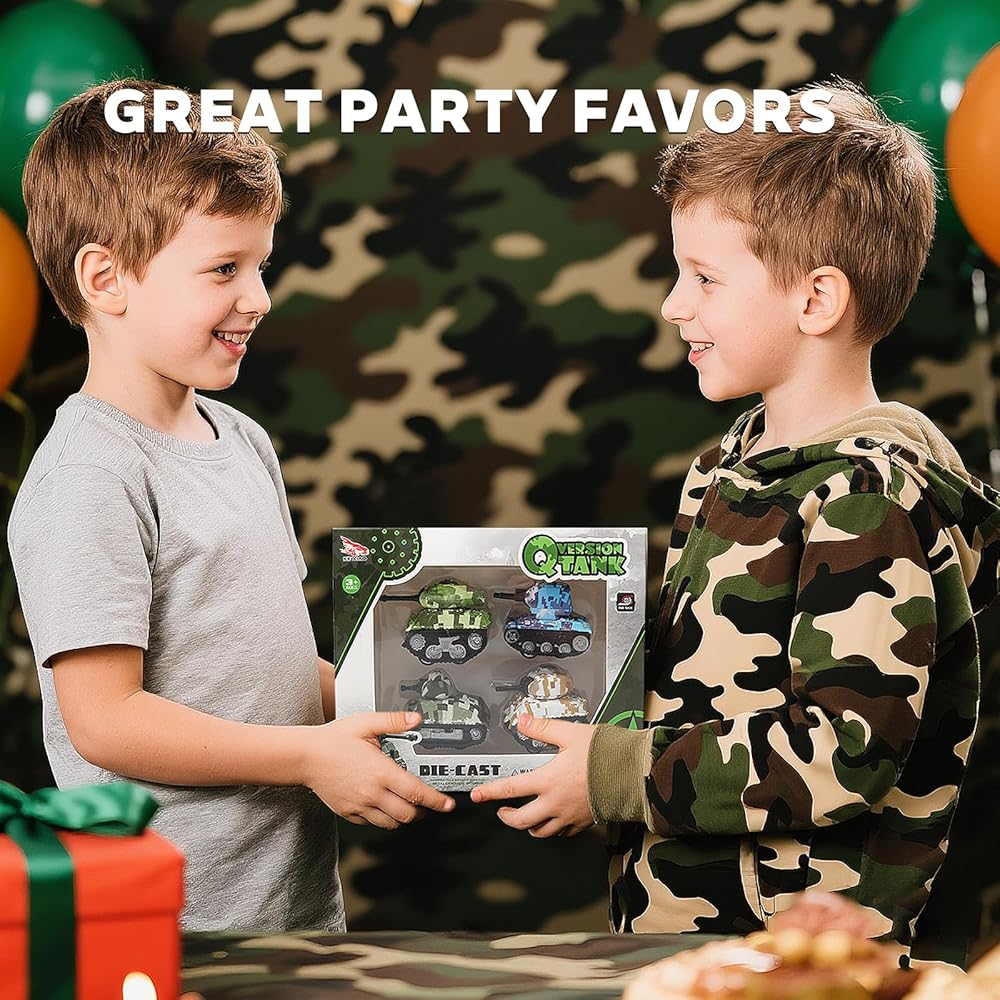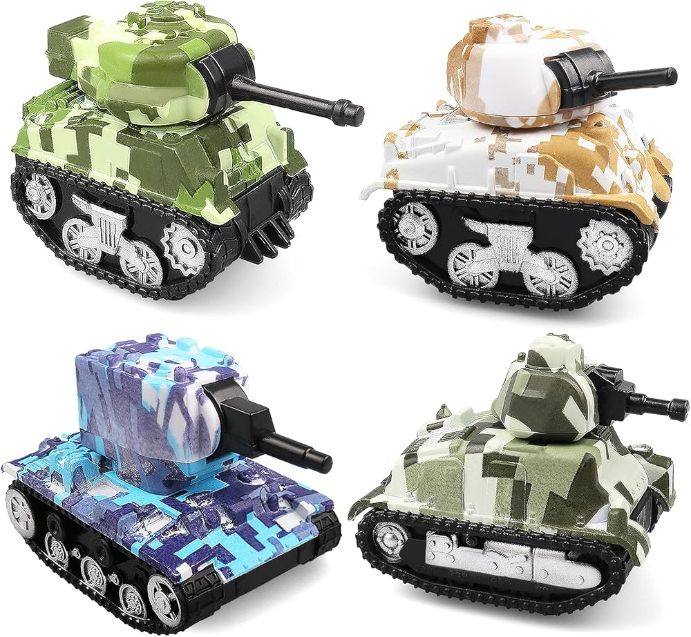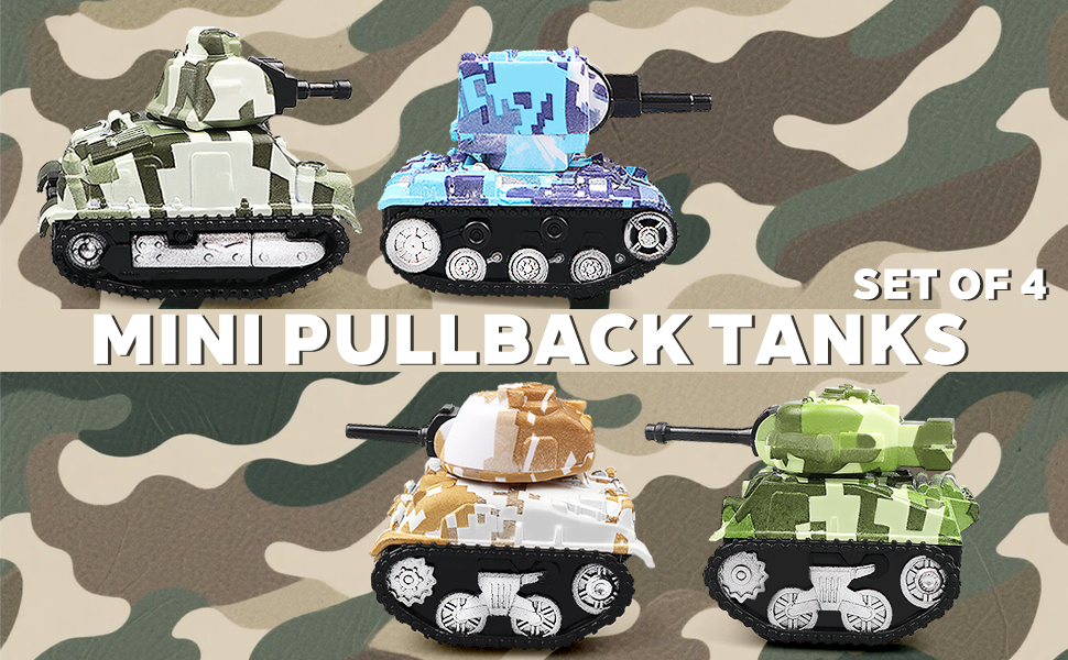 4 قطع من دبابات لعبة السحب الصغيرة، نماذج دبابات لعب المركبات للأطفال، هدايا حفلات أعياد الميلاد للأولاد والبنات للأعمار 3 4 5 6