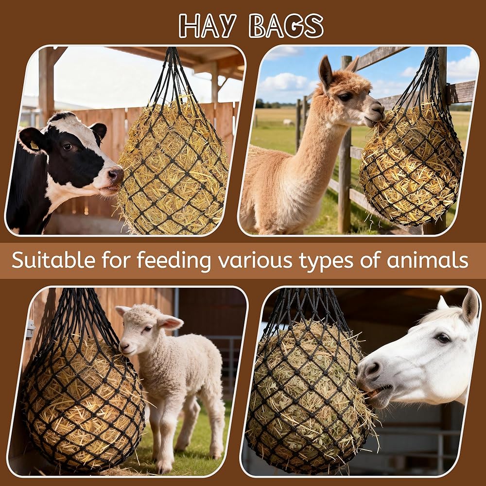 Convenient 3-Pack Set: The 3-pack offers efficient rotation and cleaning while keeping feeding stations organized, making it a practical option for farms needing multiple hay bags for horses, replacement points, and travel-friendly horse hay net setups