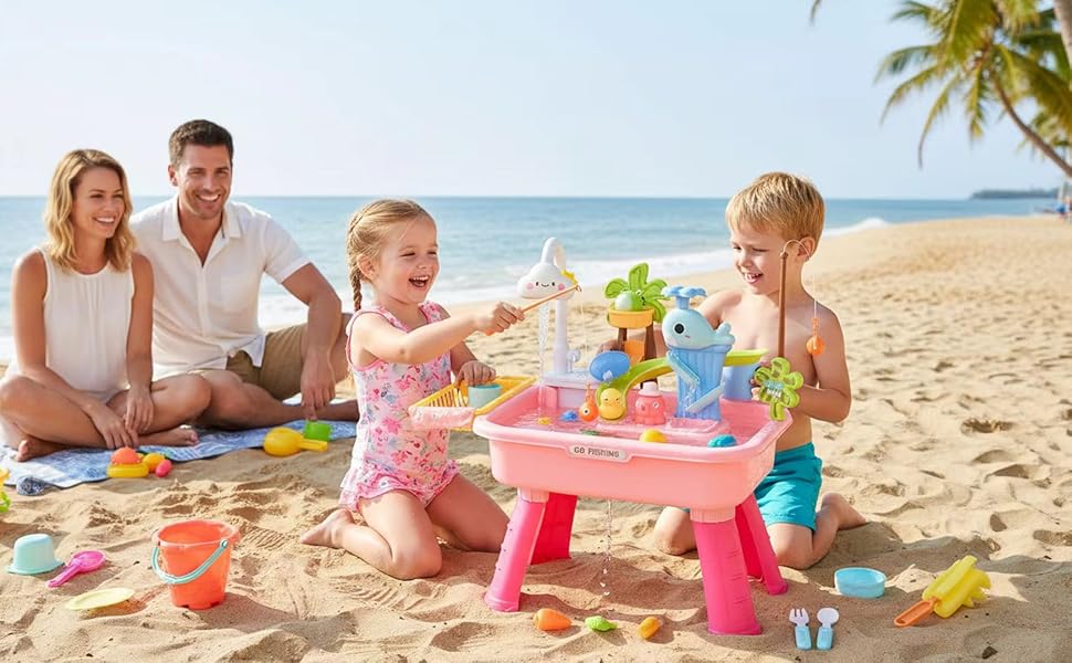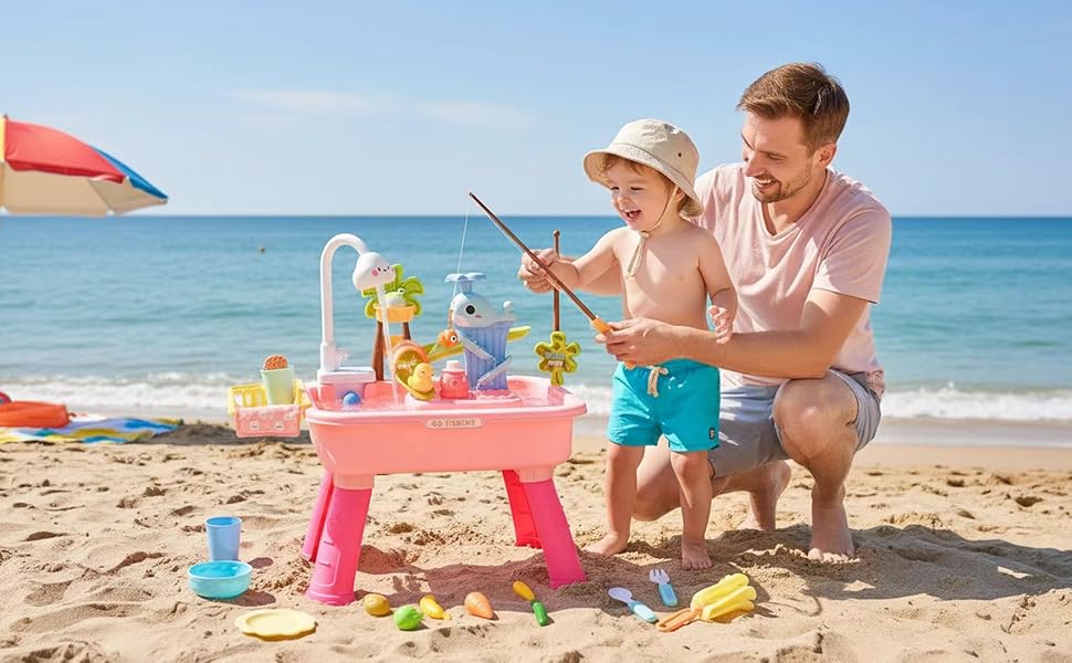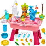لعبة طاولة مياه رملية مطورة للأطفال الصغار مع مضخة مياه كهربائية، مياه رملية للأطفال مع صنبور/لعب ملحقات الطعام/لعبة صيد السمك، ألعاب حوض لعب المطبخ للفتاة الصبية بعمر 3 سنوات فما فوق in Kuwait