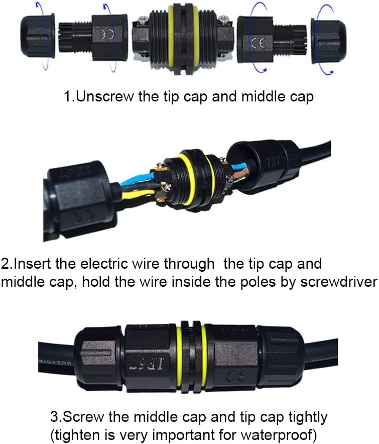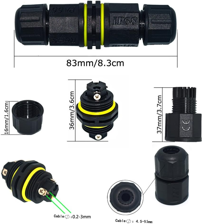 ✅🔌【السلامة الكهربائية 】صندوق توصيل كهربائي ثنائي الاتجاه و3 أسلاك/موصل كهربائي 3 دبابيس لحجم الكابل: Ø 0.18-0.39 بوصة (4.5-10 مم) - يدعم موصل مقاوم للماء منخفض التيار المستمر وعالي التيار المتردد، يمكن للموصل المقاوم للماء الخاص بنا أن يمكن استخدامها ل3core