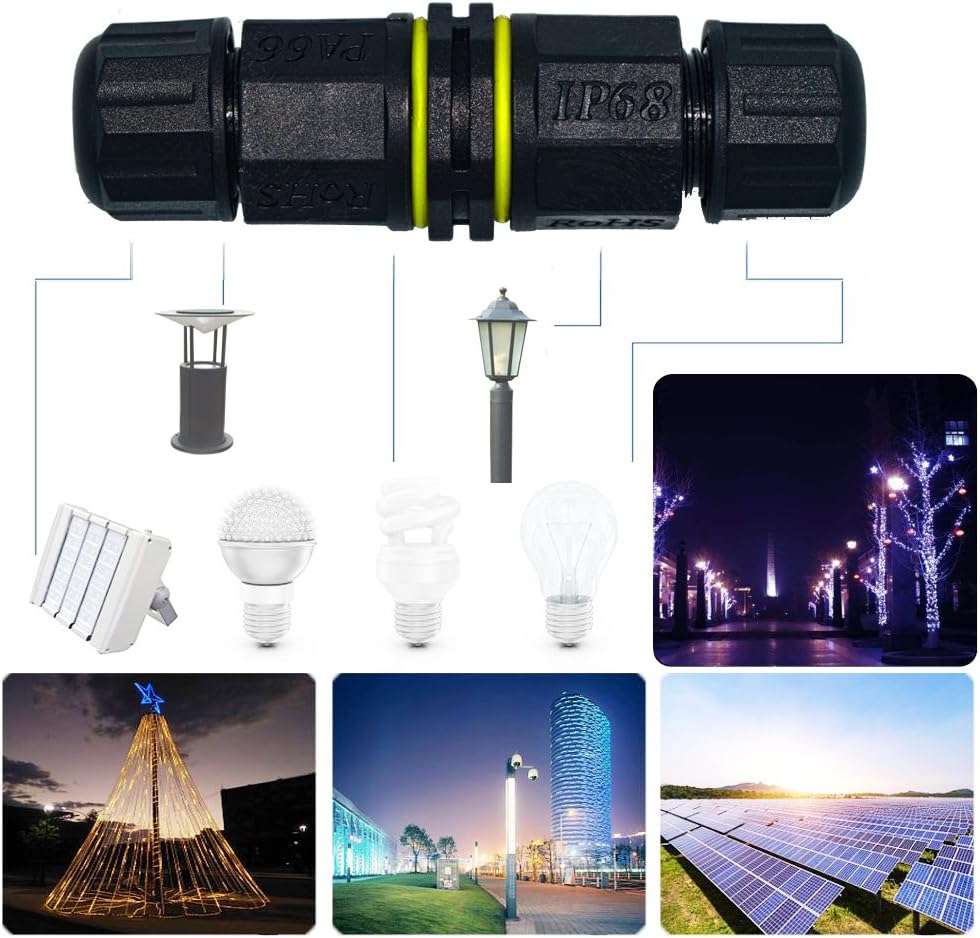 ✅🔌【قابلية استخدام واسعة】 يمكن استخدام صندوق IP68/الموصل الكهربائي 3 دبابيس/موصل توصيل الأسلاك لإصلاح وتمديد كابلات الطاقة. وصناديق التوصيل الكهربائية مناسبة للتوصيل السريع الآمن بالإضاءة الخارجية، والأسلاك الخارجية، وشاشات العرض/العشب/الحديقة/اللوحات الإعلانية/الأنفاق/المناظر الطبيعية للطرق، والتطبيقات الإضافية المثالية المستخدمة في سخانات المياه بالطاقة الشمسية، والآلات والمعدات المختلفة.
