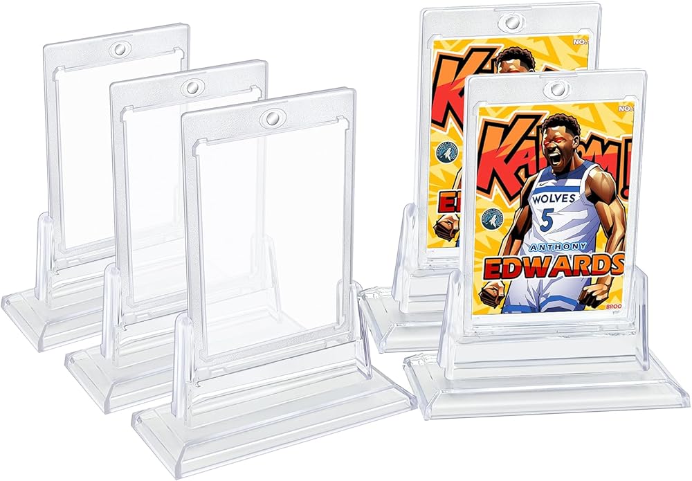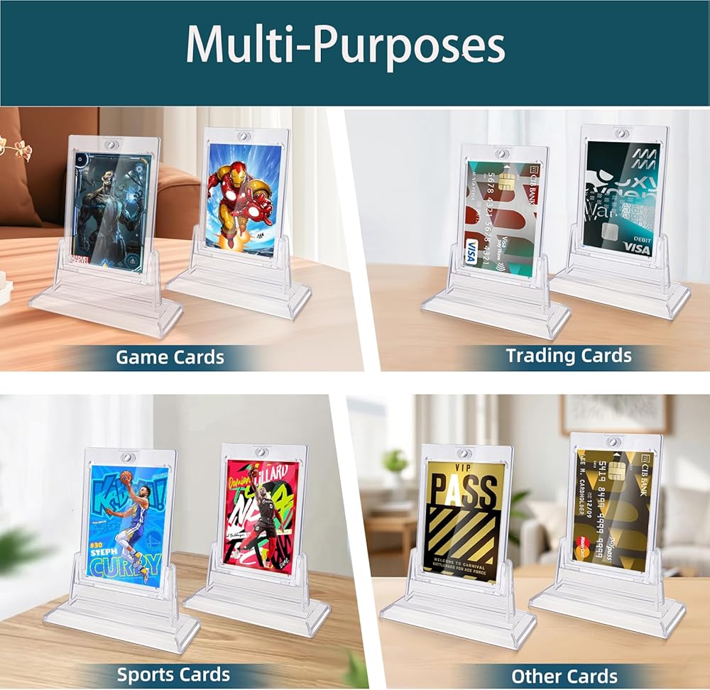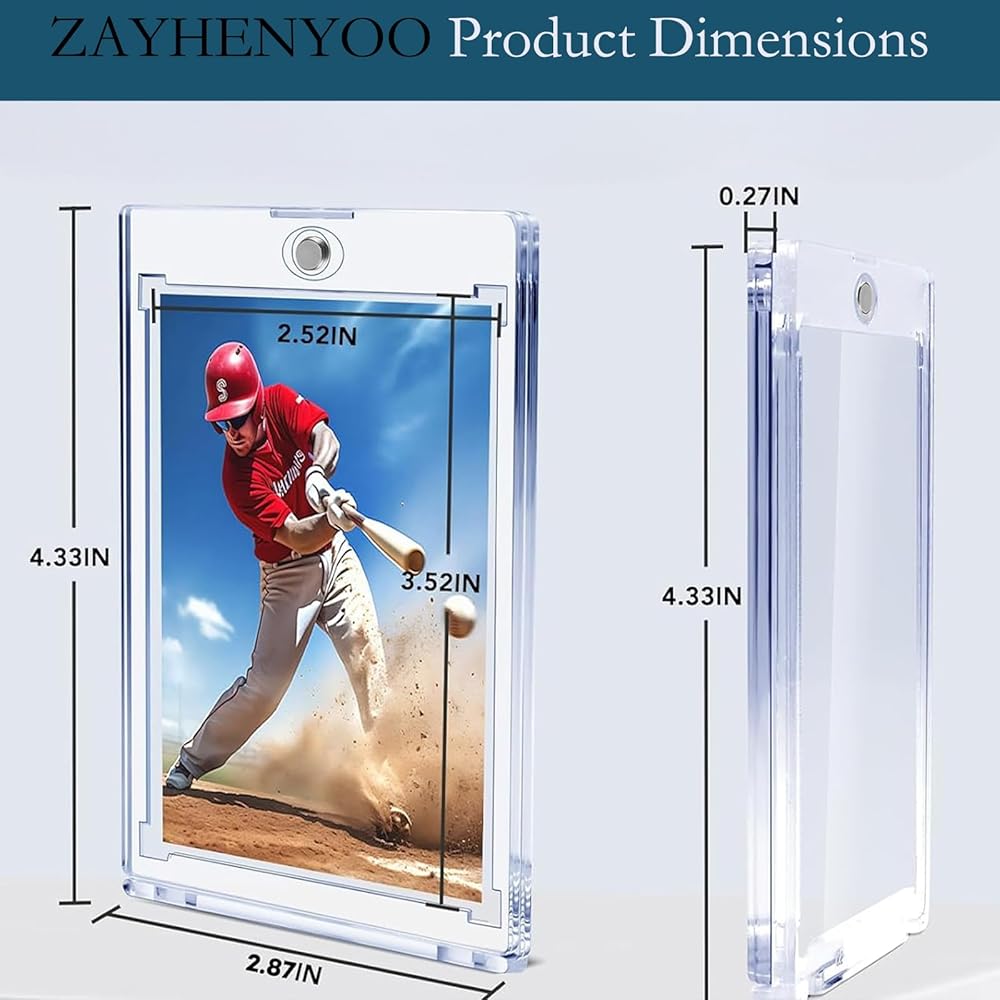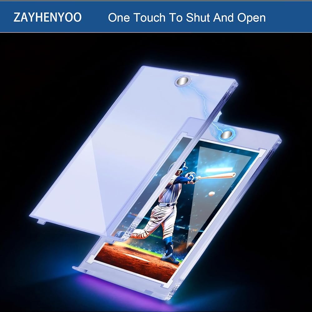 Protect your valuable trading cards with these premium magnetic card holders from ZAYHENYOO. These crystal-clear cases feature a robust magnetic closure system that securely displays and preserves your cherished collectibles. Perfect for MTG cards, sports cards, baseball cards, and other standard-sized trading cards, these holders provide superior protection against dust, scratches, and handling damage. The innovative U-V design includes a convenient display stand functionality, allowing you to showcase your most prized cards in style. These cases are specifically designed to accommodate 35pt toploaders, ensuring your cards stay firmly in place. The transparent acrylic construction offers excellent visibility while maintaining the professional presentation collectors demand. Whether you're storing your cards long-term or displaying them at trading events, these magnetic holders deliver the protection and presentation your collection deserves.