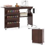 طاولة خياطة قابلة للطي من دورتالا مع محطة شحن، محطة حرفية متدحرجة مع 3 صناديق تخزين ورف مفتوح، مكتب ماكينة خياطة متنقل مع عجلات قابلة للقفل للمنزل، مساحات صغيرة (بني)