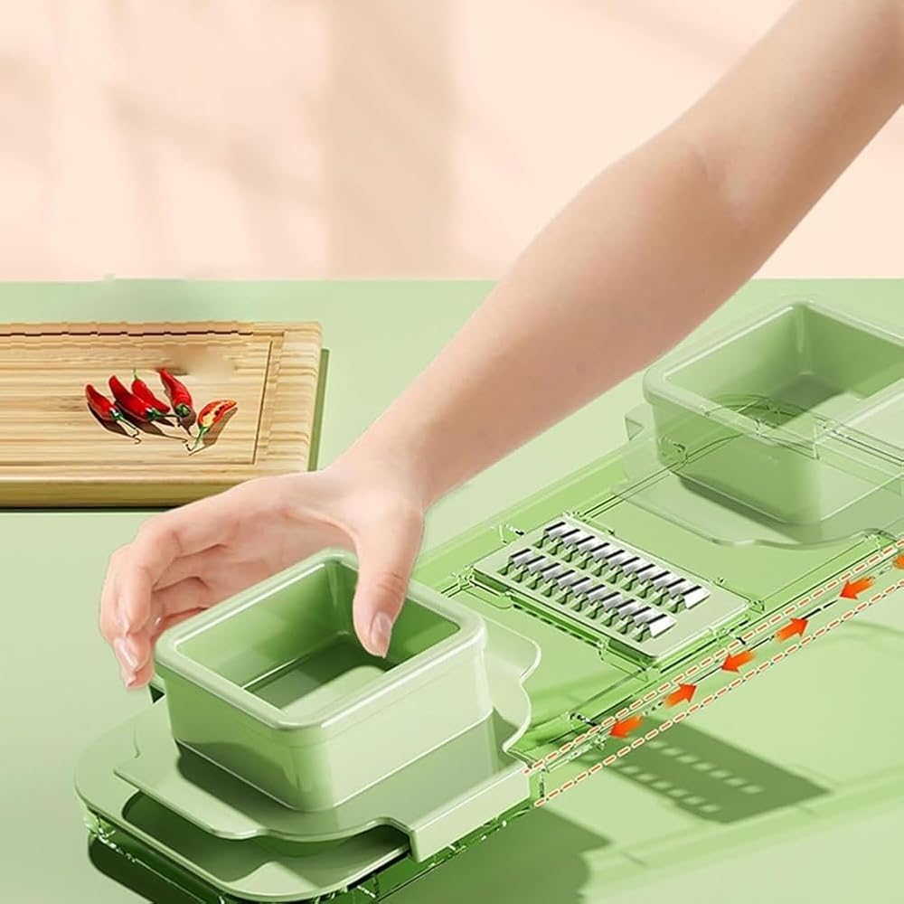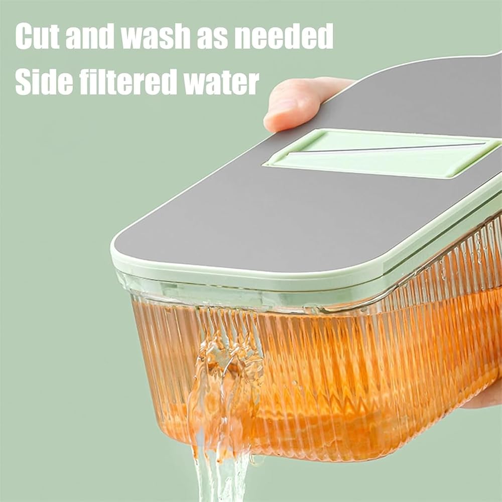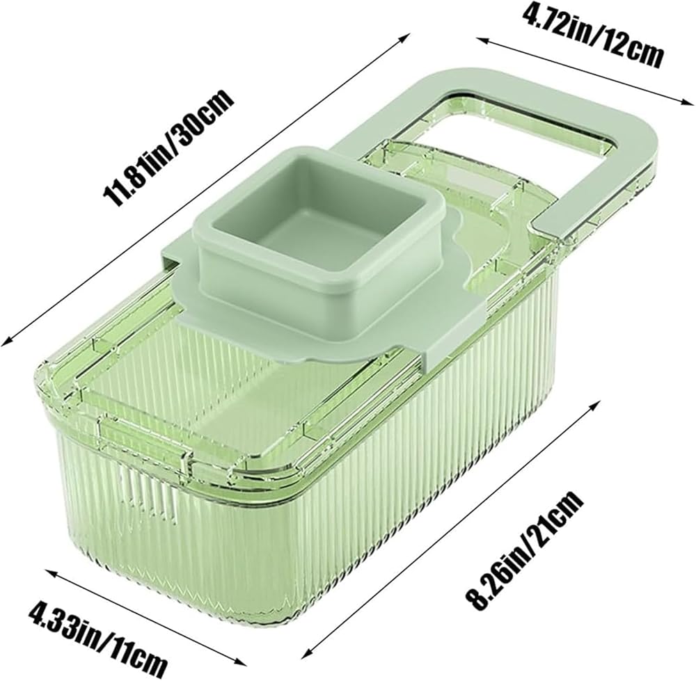 صينية حاوية كبيرة: مصممة بغطاء تقطيع مدمج، تتيح لك هذه المبشرة متعددة الوظائف تقطيع المكونات مباشرة في صينية التجميع. استمتع بسطح عمل أنظف وتنظيم مطبخ مبسط مع كل استخدام.