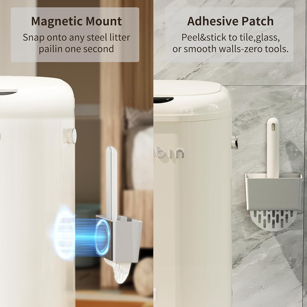 Lock-Tight Odor Shield. A silicone-sealed rim traps ammonia and fecal odors the moment the lid shuts. Guests can drop by unannounced and never know there's a litter box in the room.