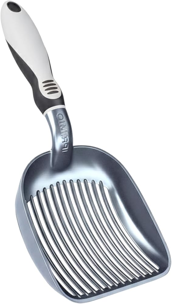 مغرفة فضلات القطط المعدنية: مصنوعة من الألومنيوم القوي، مغرفة فضلات القطط هذه خفيفة الوزن ولكنها متينة، مما يضمن أنها لن تنحني أو تنكسر أثناء معالجة أصعب التكتلات بسهولة.