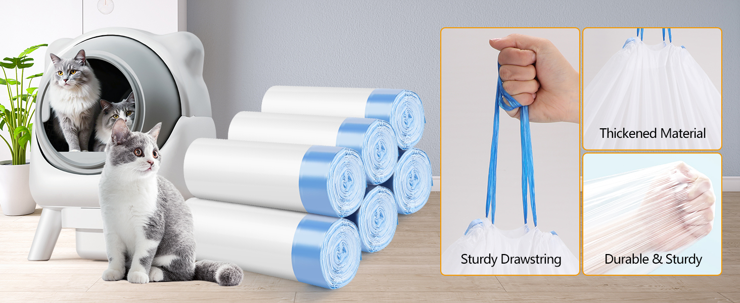 [إغلاق برباط آمن] مزود بأربطة سميكة للغاية لسهولة الرفع والإغلاق. تخلص من فضلات القطط بسرعة وبدون لمس - ما عليك سوى سحبها وربطها ورميها لتنظيف خالٍ من الفوضى وخالي من الرائحة.