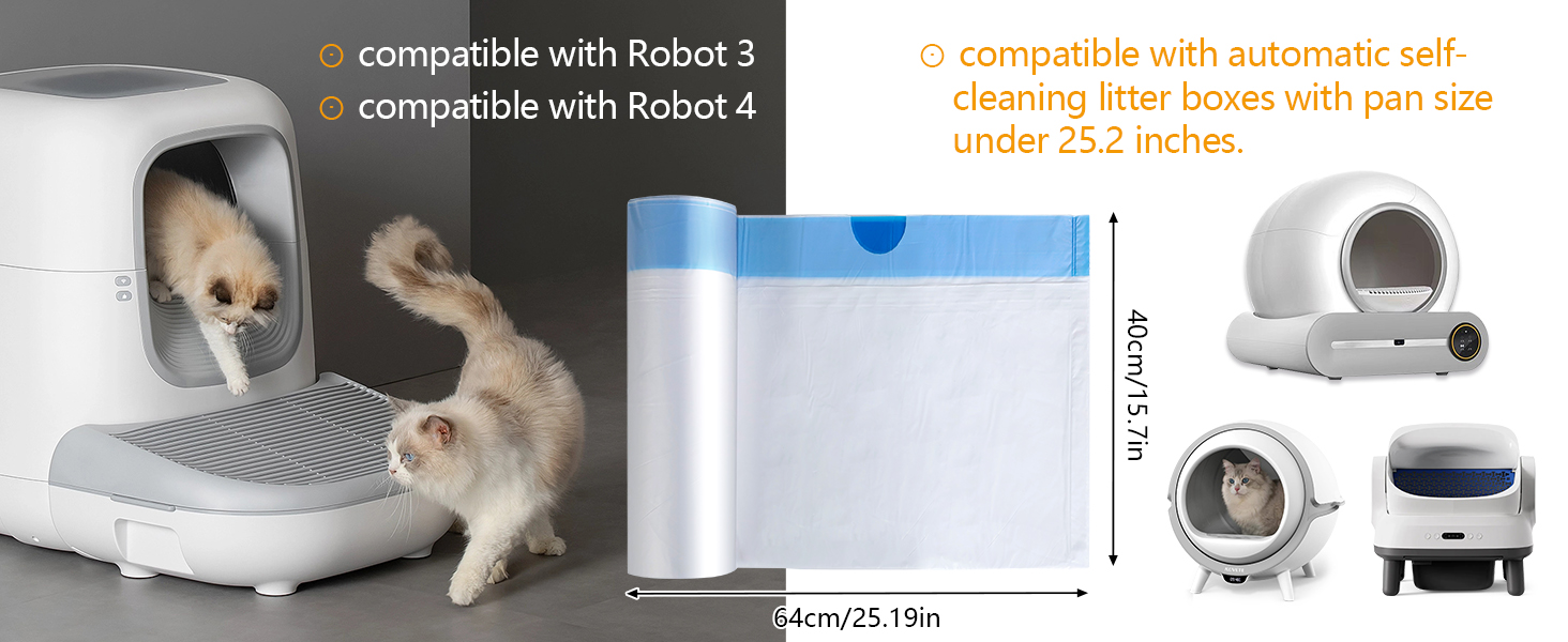 [توافق عالمي] متوافق مع Litter Robot 4 & 3، ومعظم صناديق القمامة ذاتية التنظيف بحجم وعاء أقل من 25.2 بوصة. مصمم للاستبدال بسهولة وملاءمة آمنة، مما يجعل من السهل الحفاظ على صندوق الفضلات نظيفًا.